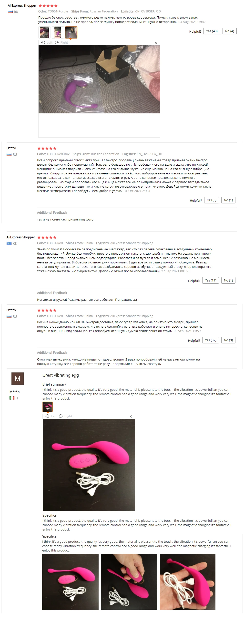 хорошая вещица, много разных режимов, сильно правда слышно вибрацию, работает как от пульта так и просто с кнопки на самом вибраторе. пришел товар очень быстро, за 2 недели до мск