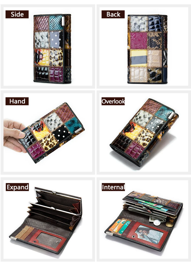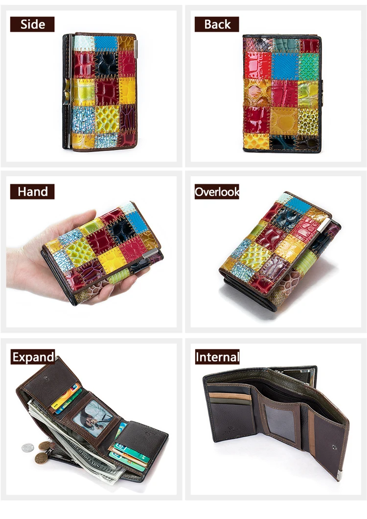 Женский кошелек из натуральной кожи в стиле пэчворк, Роскошный диза...