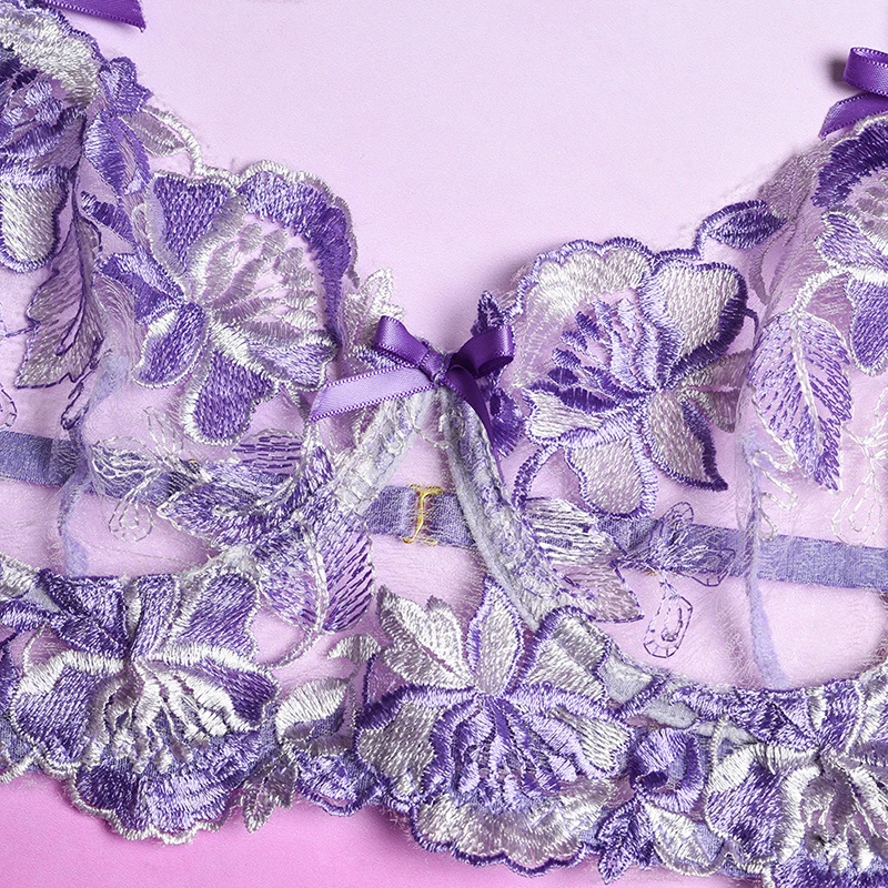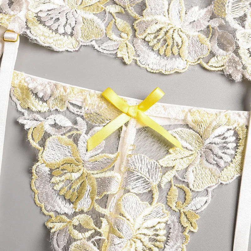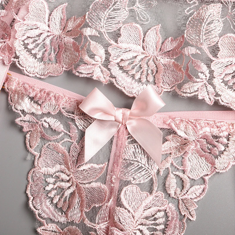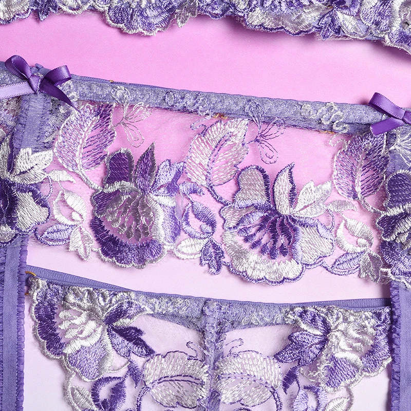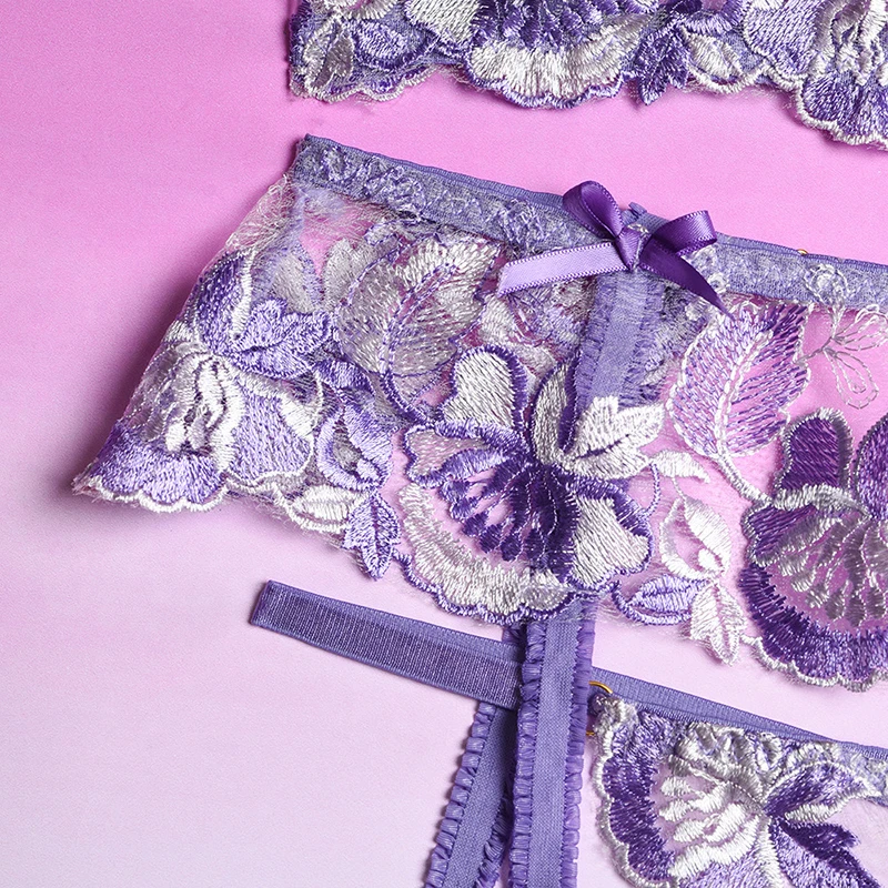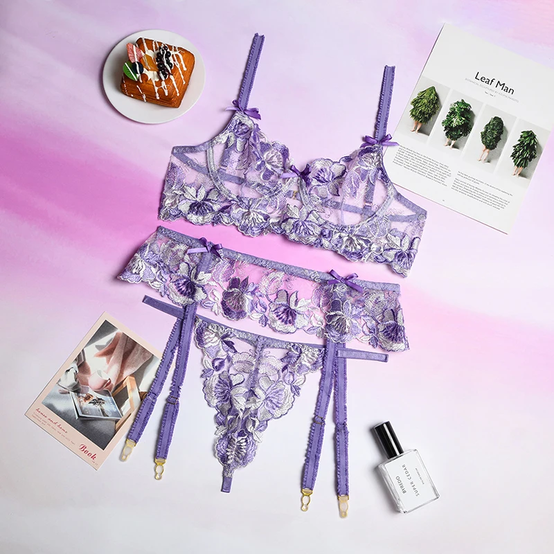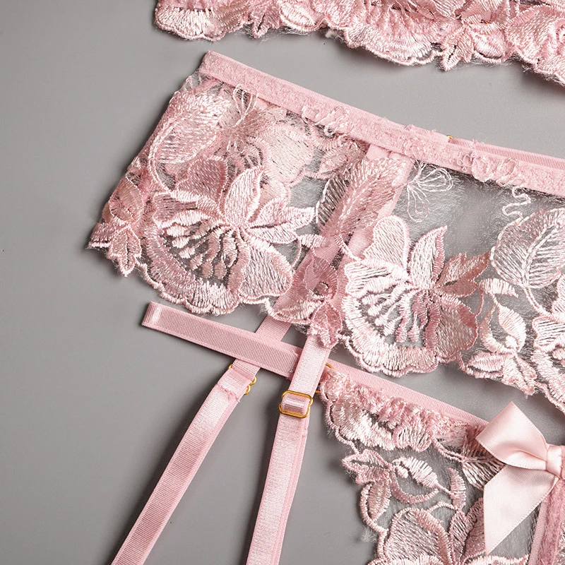 Ellolace сексуальное чувственное нижнее белье с цветочной вышивкой, Эротическое нижнее белье на косточках, комплект для ухода за кожей, подвязки, стринги, красные короткие комплекты