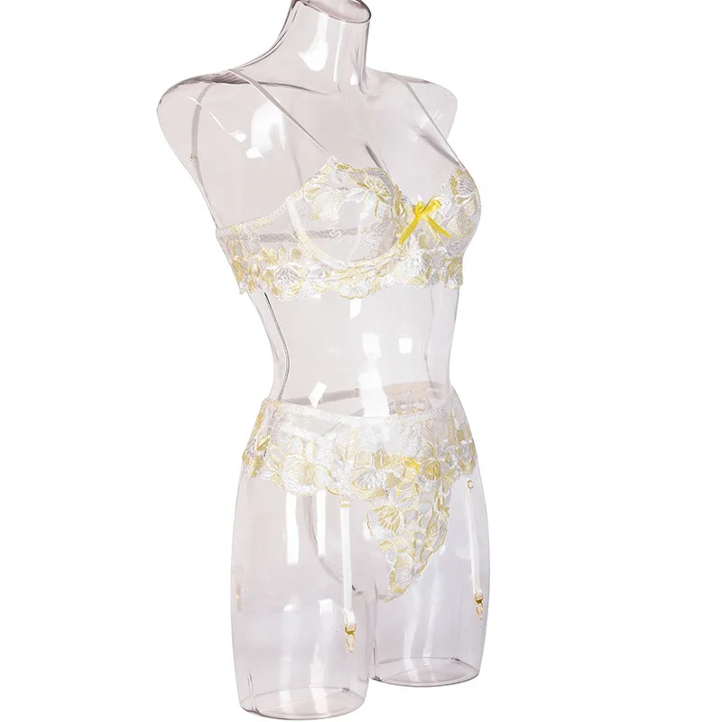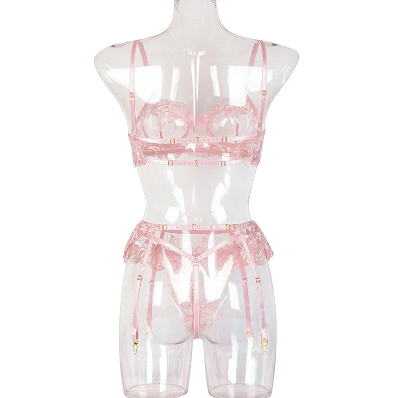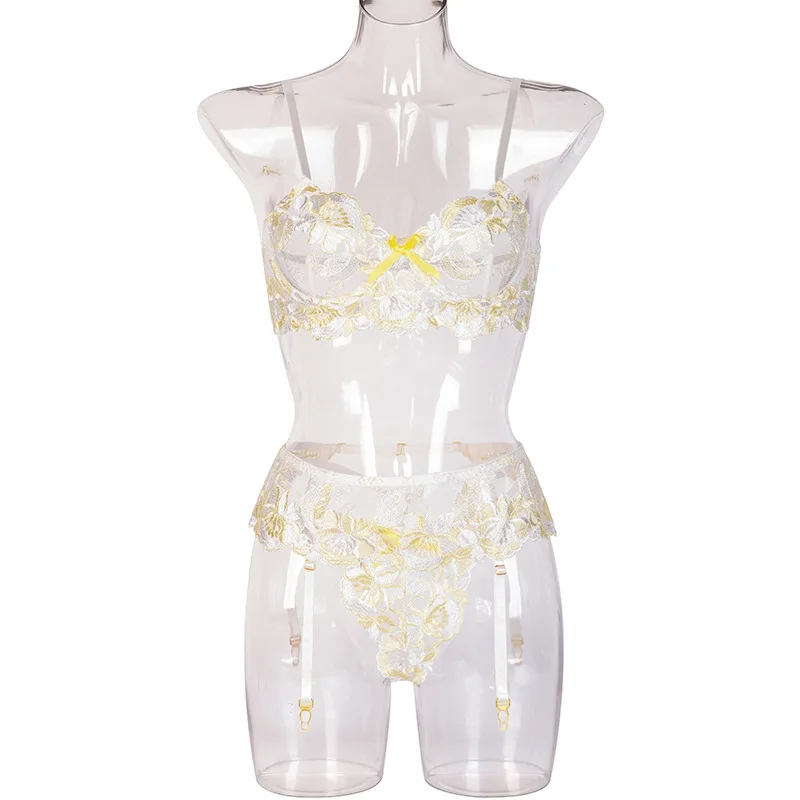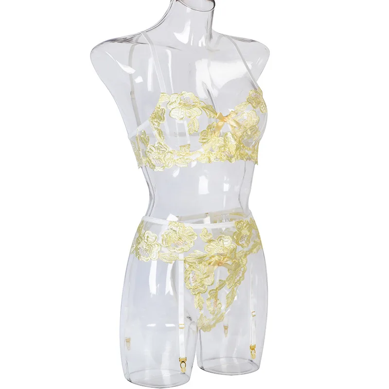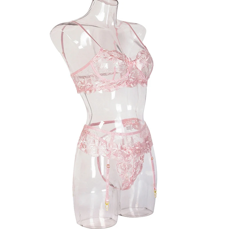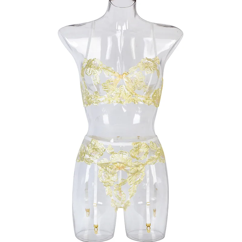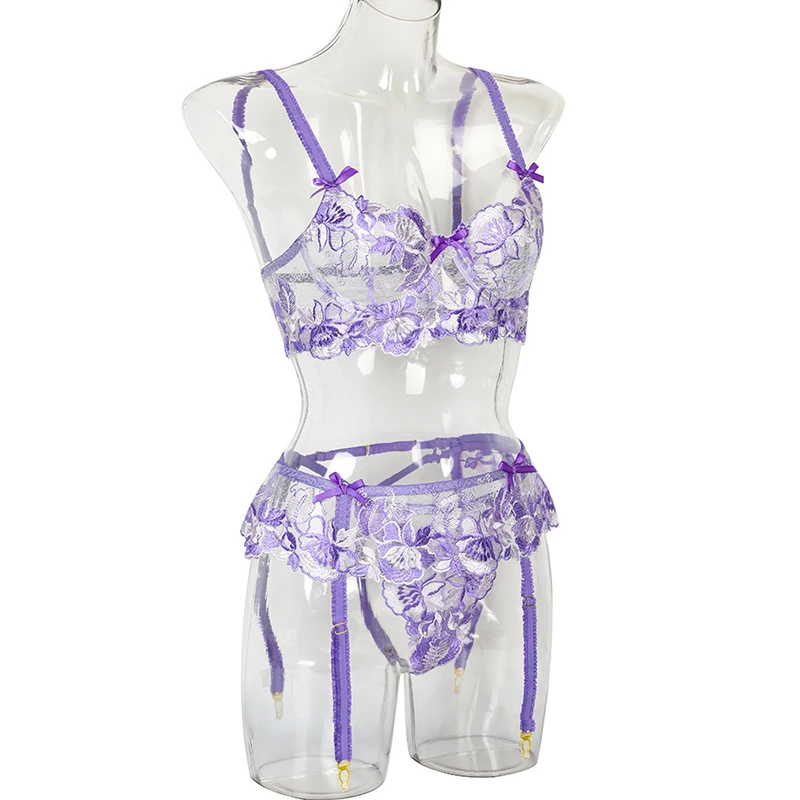 Ellolace сексуальное чувственное нижнее белье с цветочной вышивкой, Эротическое нижнее белье на косточках, комплект для ухода за кожей, подвязки, стринги, красные короткие комплекты