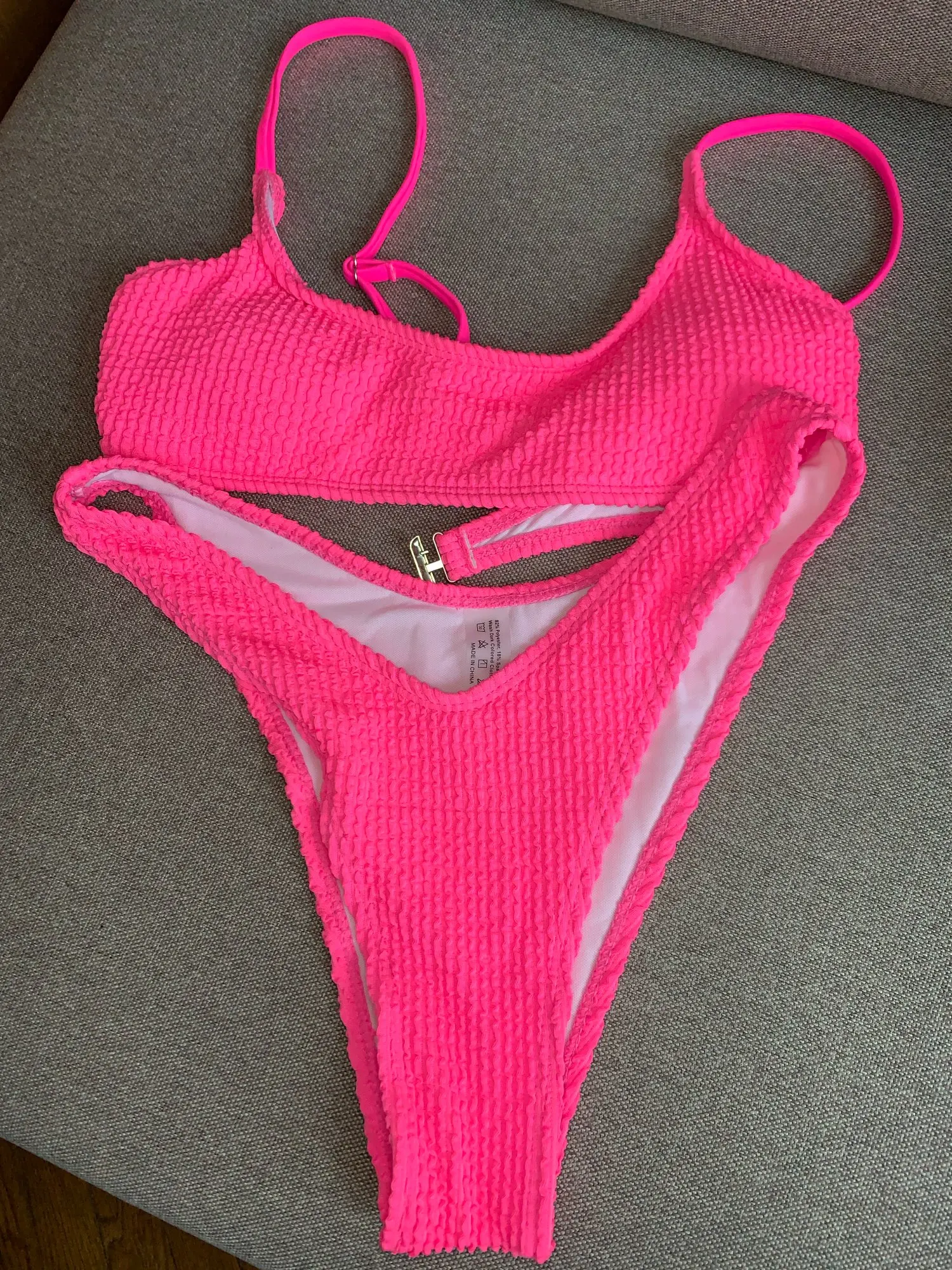 Сексуальное неоновое розовое Бразильское бикини 2021 женский купаль...