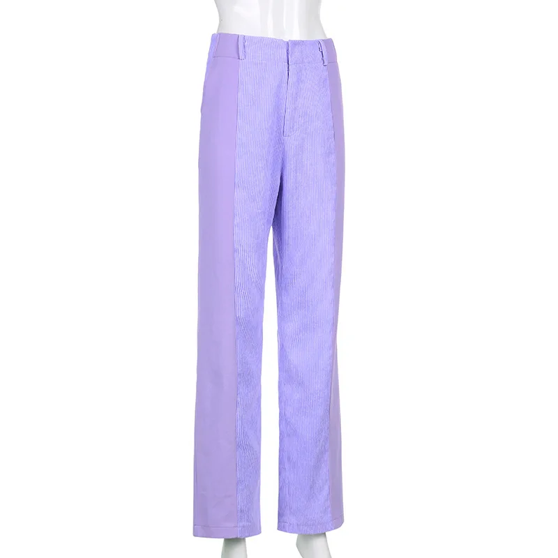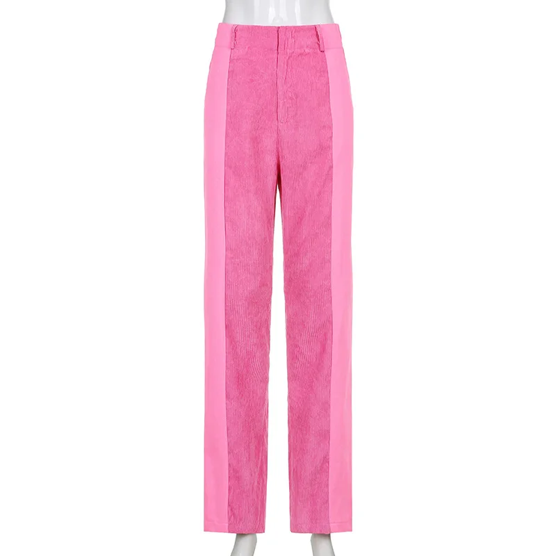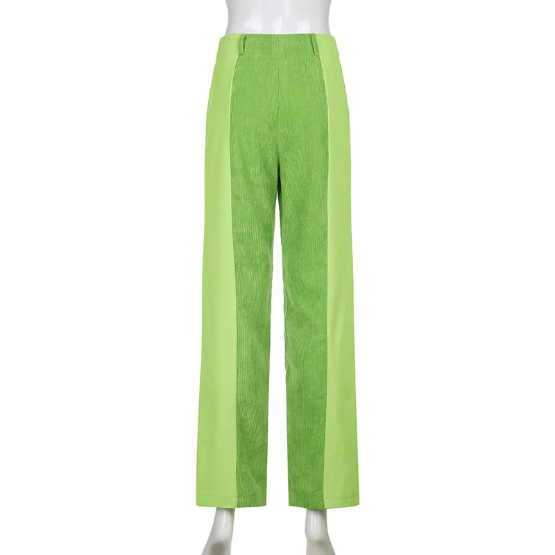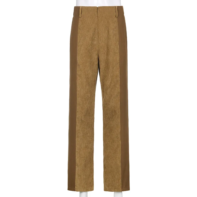 Вельветовые Y2K мешковатые штаны женские коричневые Лоскутные прямые брюки неоновые Цвет в винтажном стиле, в стиле 90-х эстетическое уличная штанишки для малышей 6 Цвет s