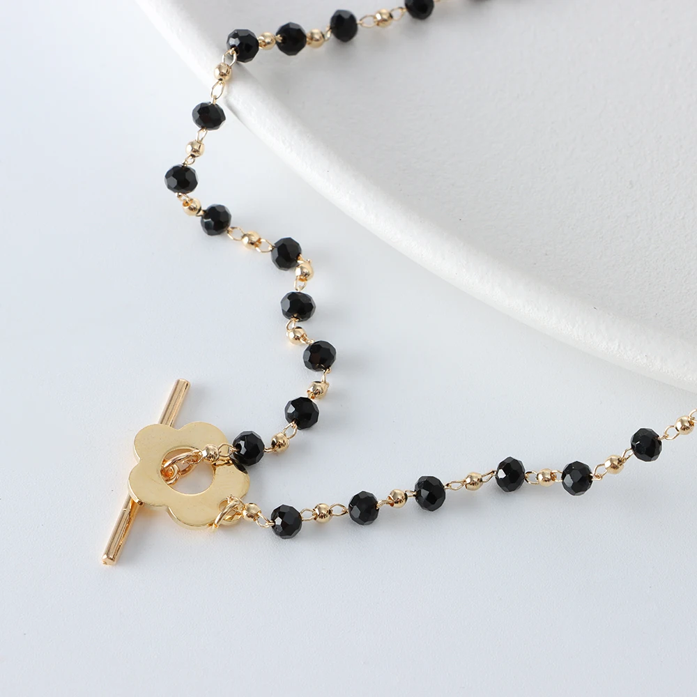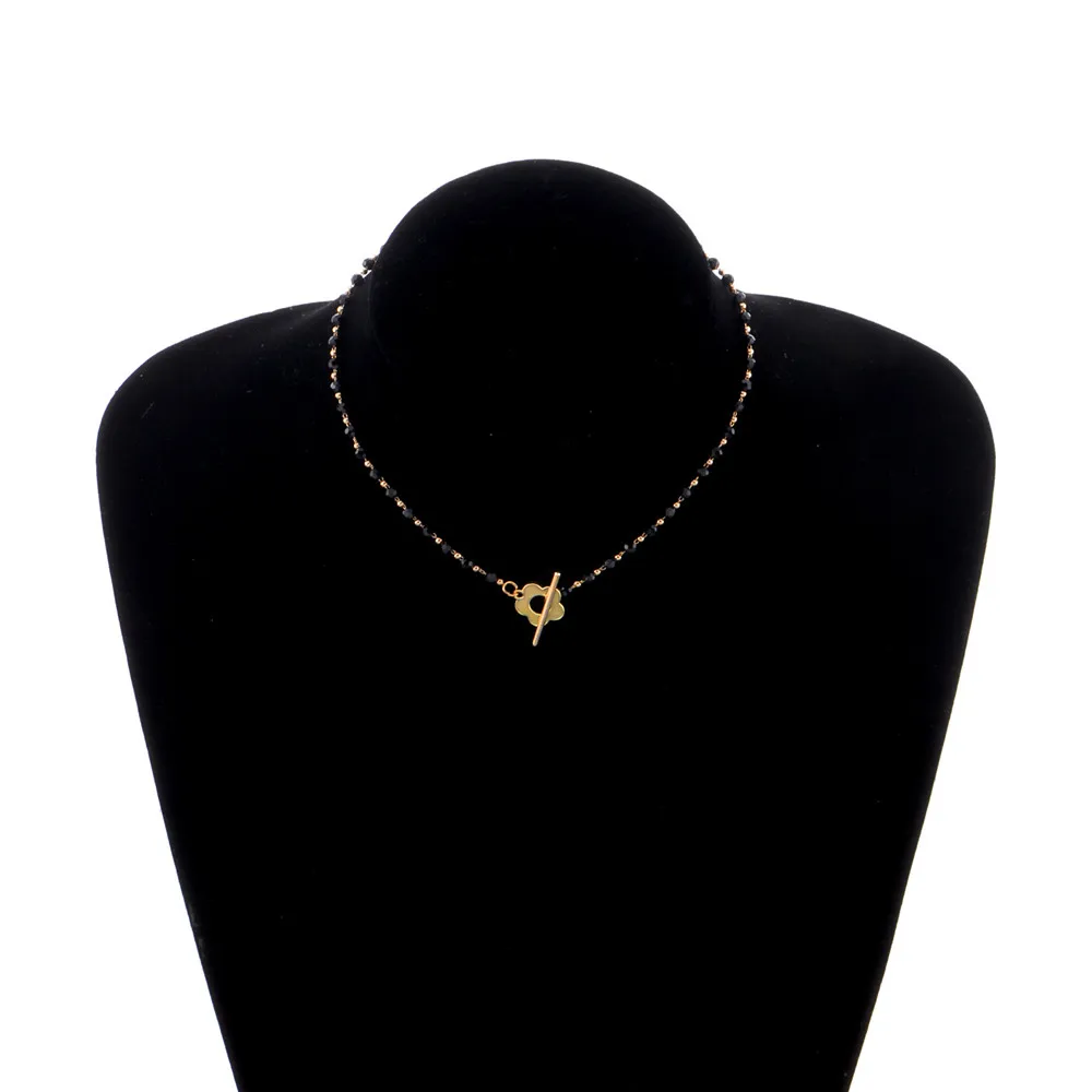 Черные бусины, чокер, цепочка с пряжкой, цветочное ожерелье, жемчужное колье до ключиц, ювелирные изделия на шею, Подвеска для женщин, Кристальные бусины Kpop