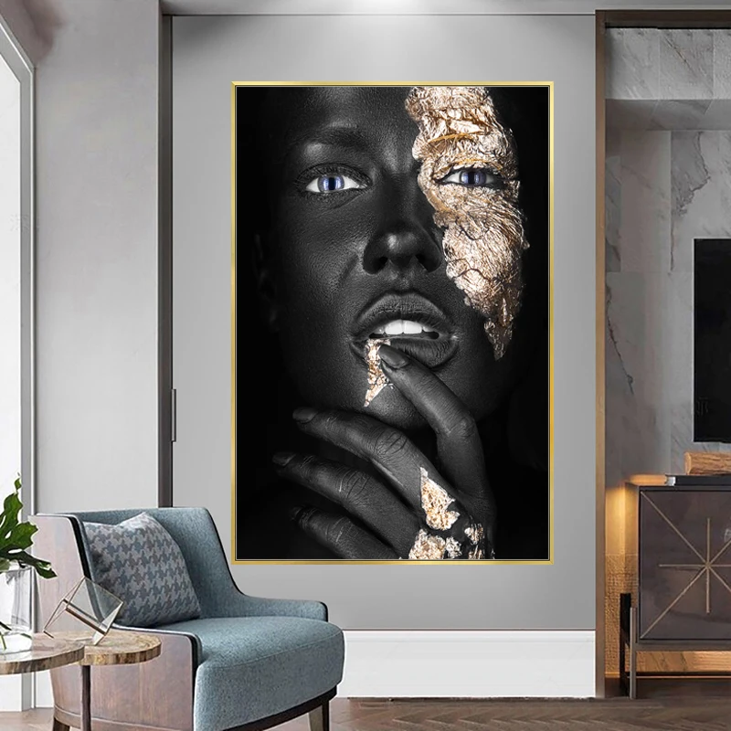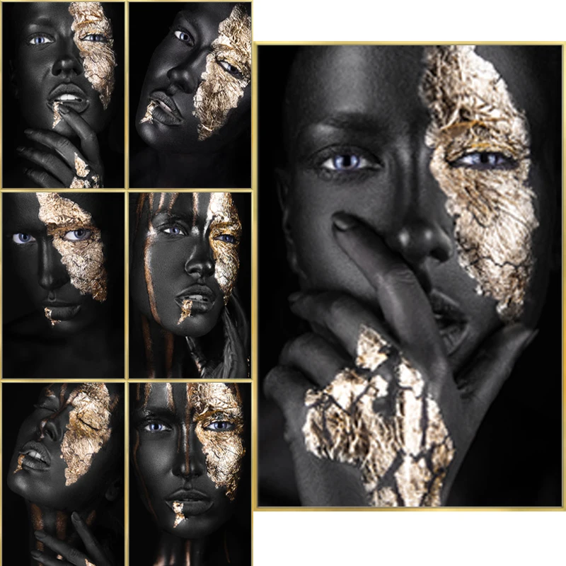 Африканское искусство черная и Золотая женщина картина маслом на хо...