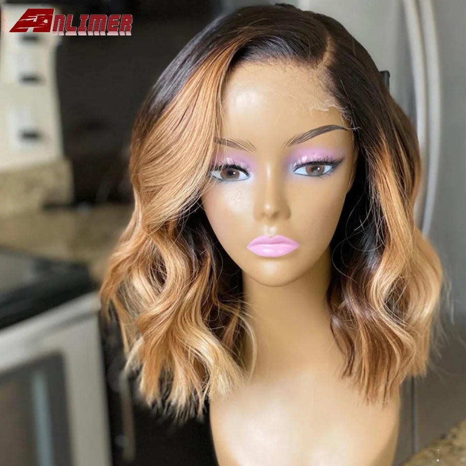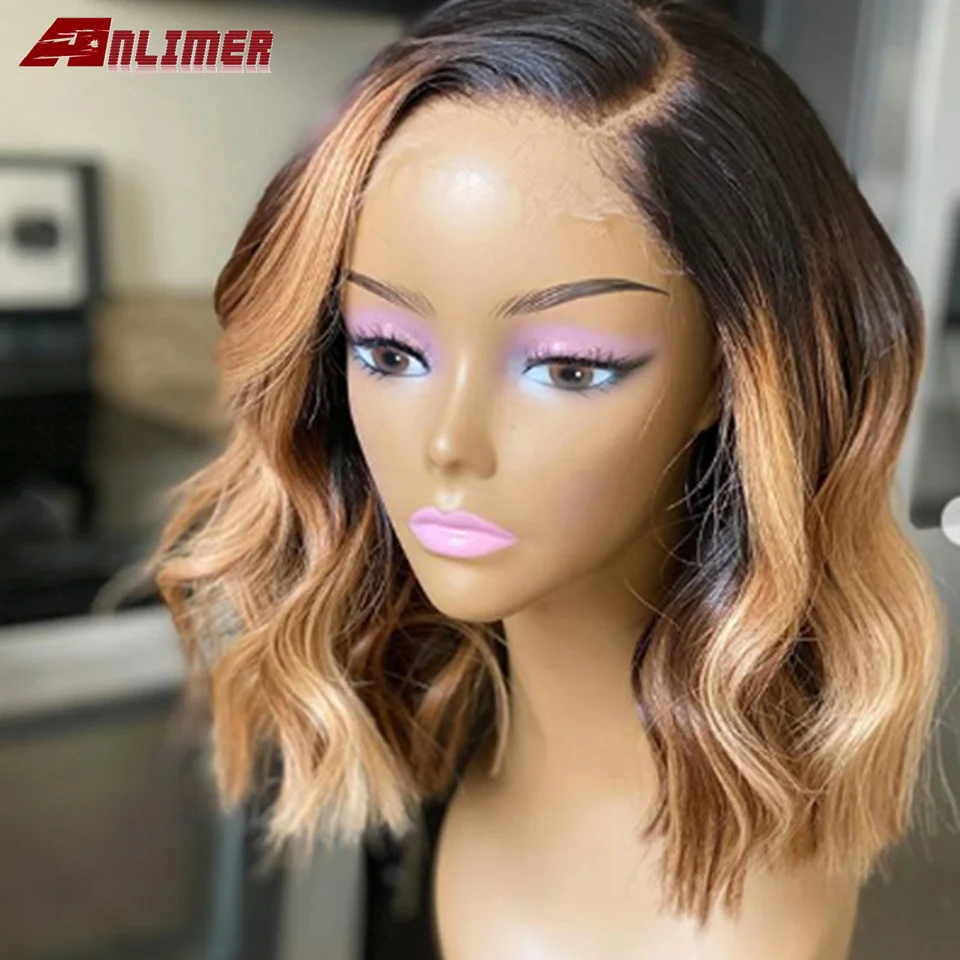 Anlimer Ombre медовый блонд короткие волнистые 360 кружевные передние al человеческие волосы парики бразильские Remy 13x6 короткие Боб волнистые кружевные передние парики