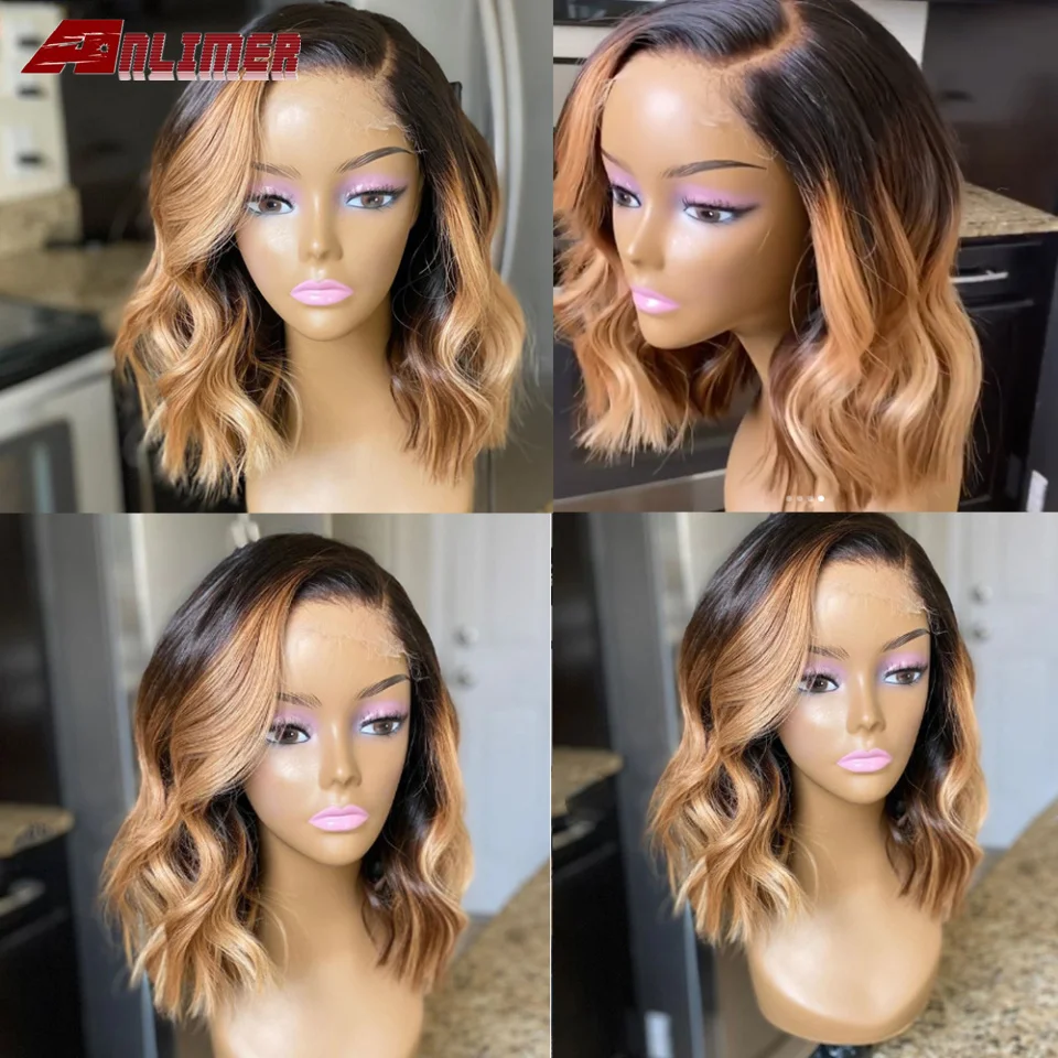 Anlimer Омбре медовая Блондинка короткая волна 13x4 кружевные фронтальные человеческие волосы парики бразильские Реми Короткие Волнистые Волосы 5x5 шелковые парики
