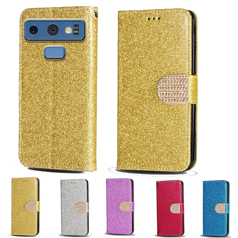 Блестящий Алмазный откидной кожаный чехол-бумажник для телефона Son...