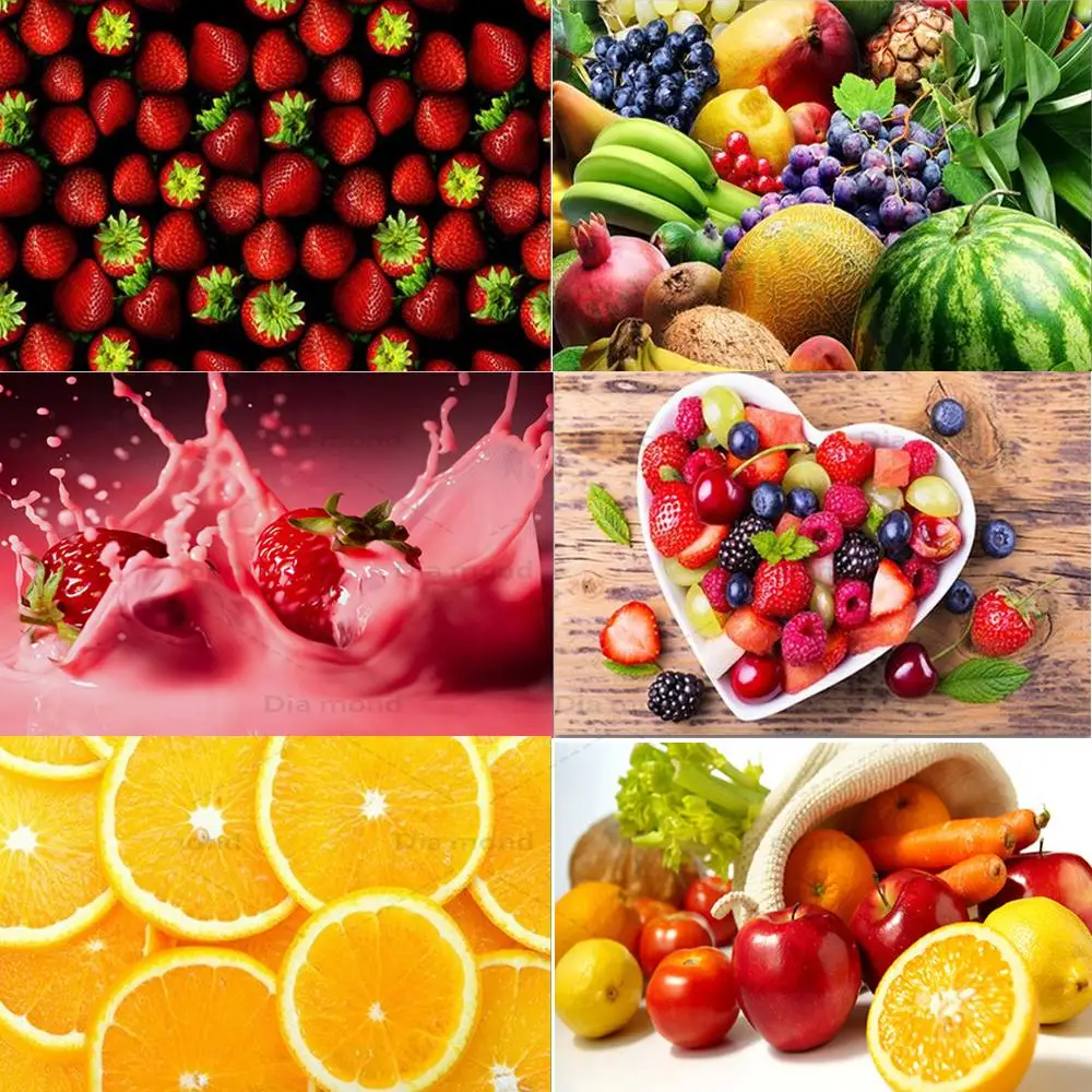Алмазная живопись, 5D фрукты и овощи, вышивка крестиком, клубника, лимон, мозаика, алмазная вышивка, украшение для кухни
