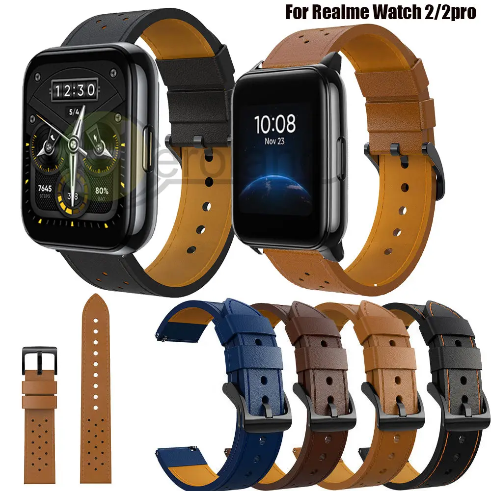 Ремешок из натуральной кожи для Realme Watch 2 2 pro, браслет для смарт-часов Realme Watch Spro, аксессуары для часов