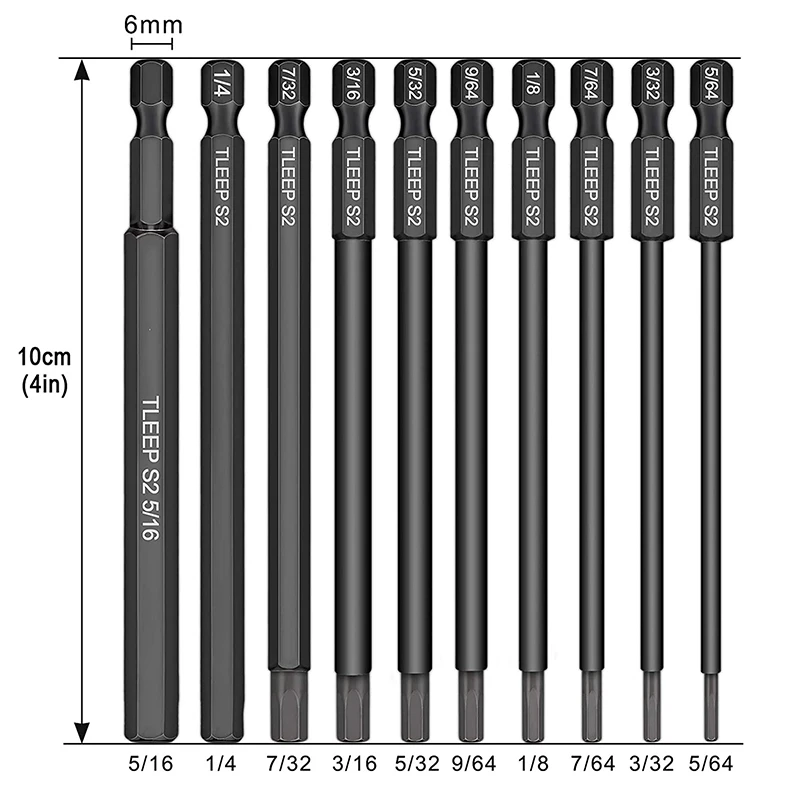 1.【Allen ключ, дюймовый стандарт набор сверл включает 10 самых популярных метрических Sizes】 1,5 мм, 2 мм, 2,5 мм, 3 мм, 4 мм, 5 мм, 6 мм, 8 мм, 10 мм, 12 мм. Набор бит хвостовик: 6,35 мм/1/4 ", Длина: 100 мм (3,94").