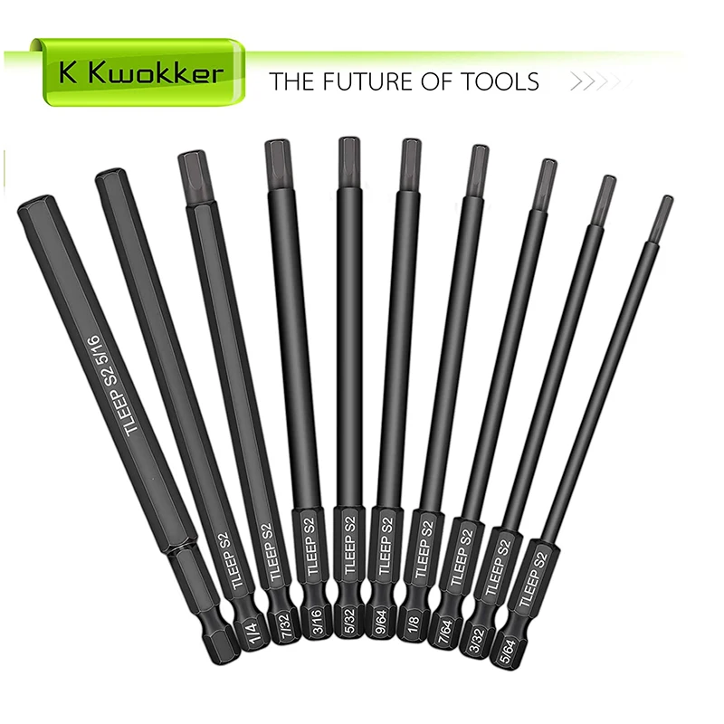 10 шт. шестигранный гаечный ключ набор сверл 100 мм S2 Стальные Шестигранные отвертки SAE метрические шестигранные отвертки шестигранные биты с магнитным наконечником