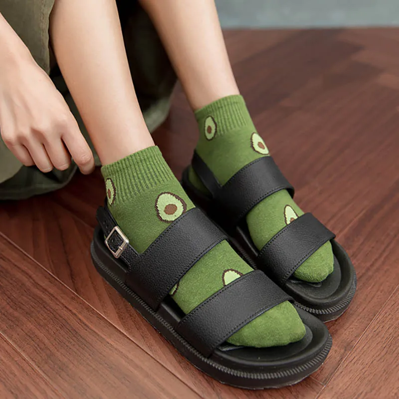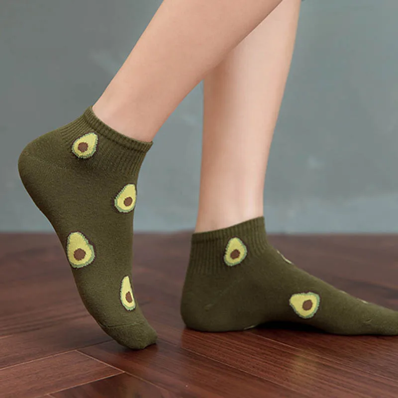 Короткие женские носки из полиэфирного волокна Sox, 1 пара, неглубокий рот, хороший подарок, с рисунком авокадо, в японском стиле, летние носки-лодочки
