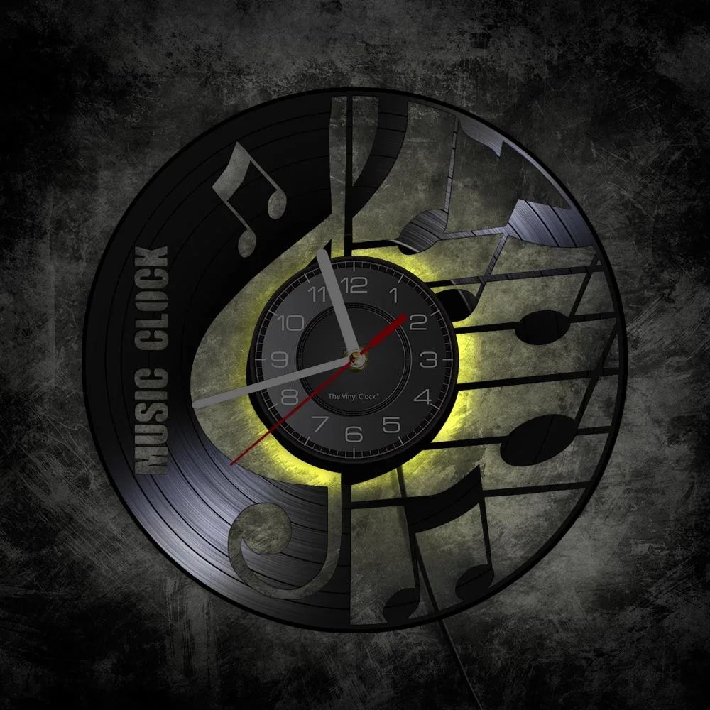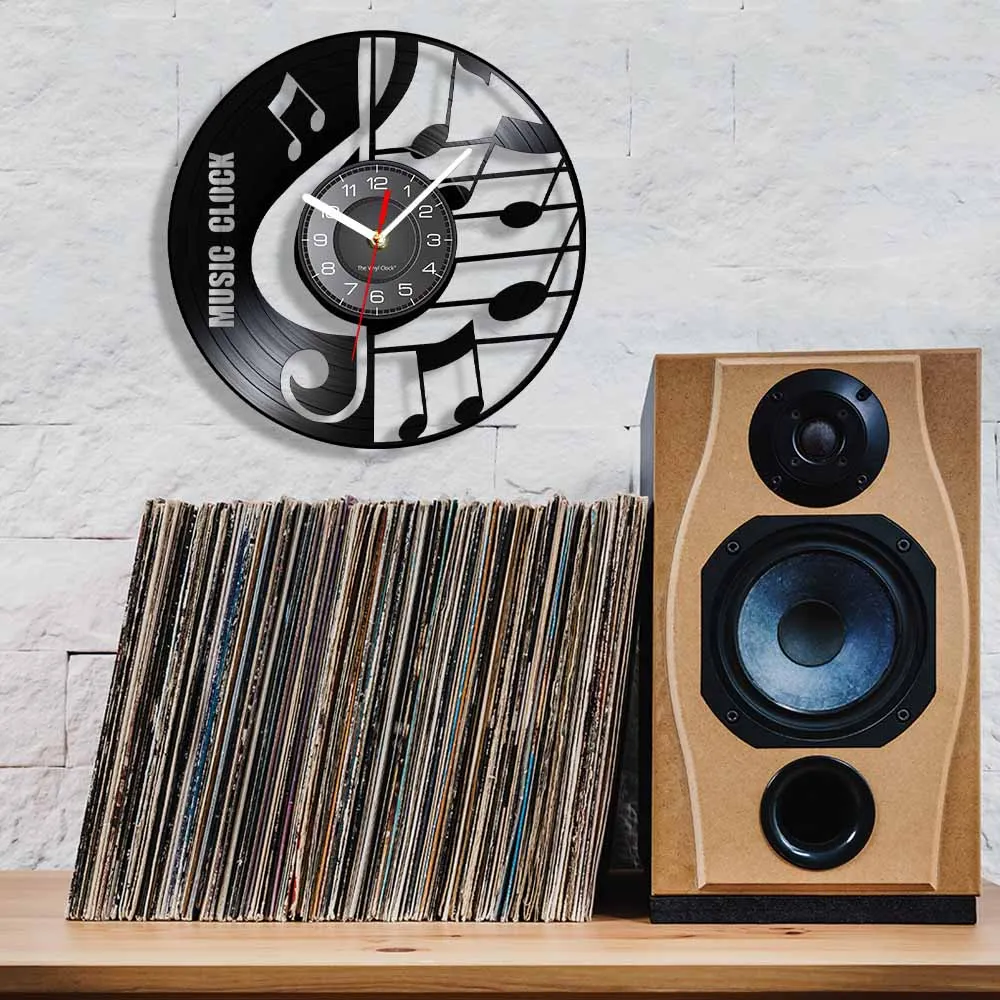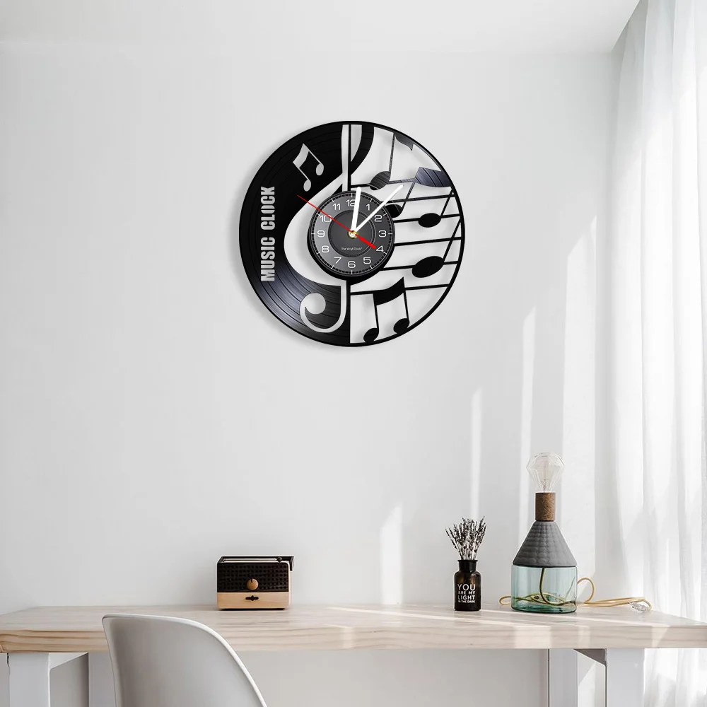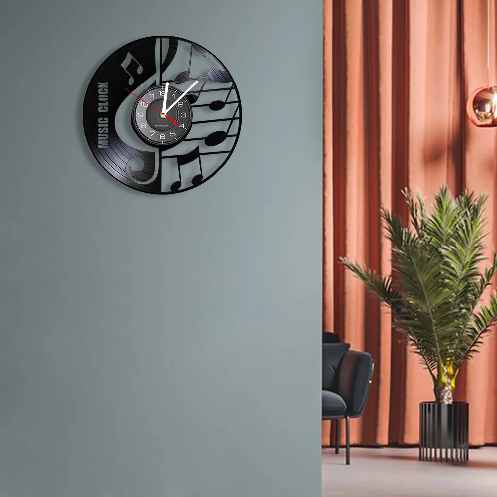 Настенные часы с музыкальным ремешком, классические тихие виниловые наручные часы с скрипичным ключом, без звука, для музыкальных фотографий, подарок для музыкантов