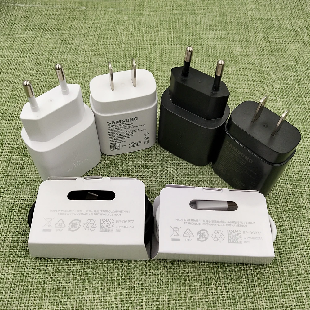 Особенности: -Супер быстрое зарядное устройство Samsung Galaxy Note 10 -Максимальная выходная мощность: 25 Вт -- Штепсельная вилка ЕС/США -- Кабель USB Type-C для Type-C 100 см 3A -Черный/белый
