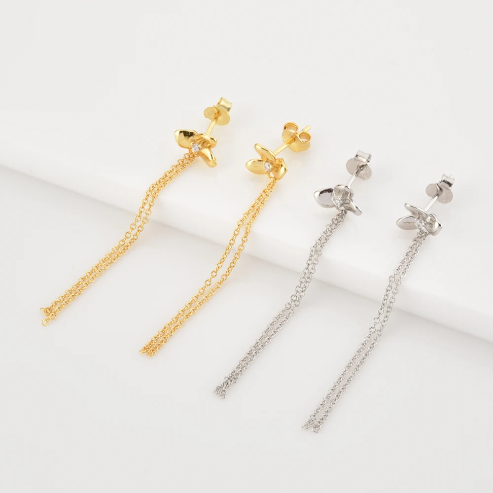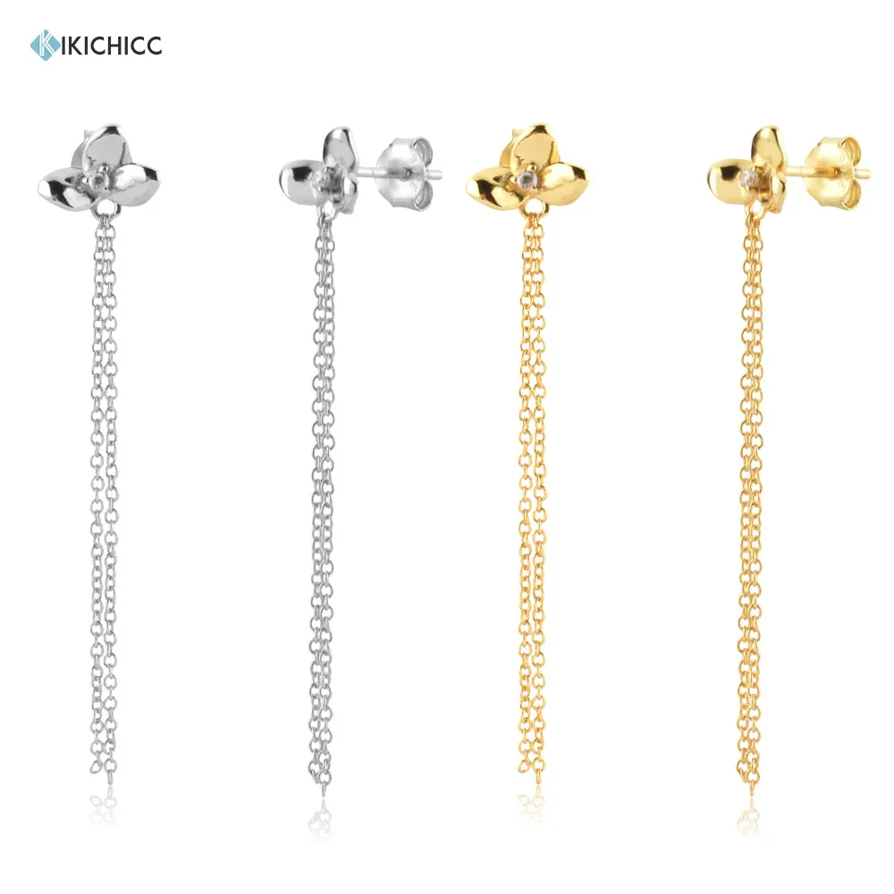 KIKICHICC 925 стерлингового серебра Камиль Золотая Длинная цепочка серьги-гвоздики в форме цветка для женщин Роскошные ювелирные изделия подарок в стиле панк-рок вечерние Драгоценности подарок