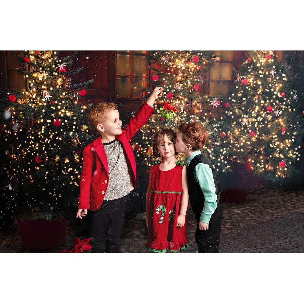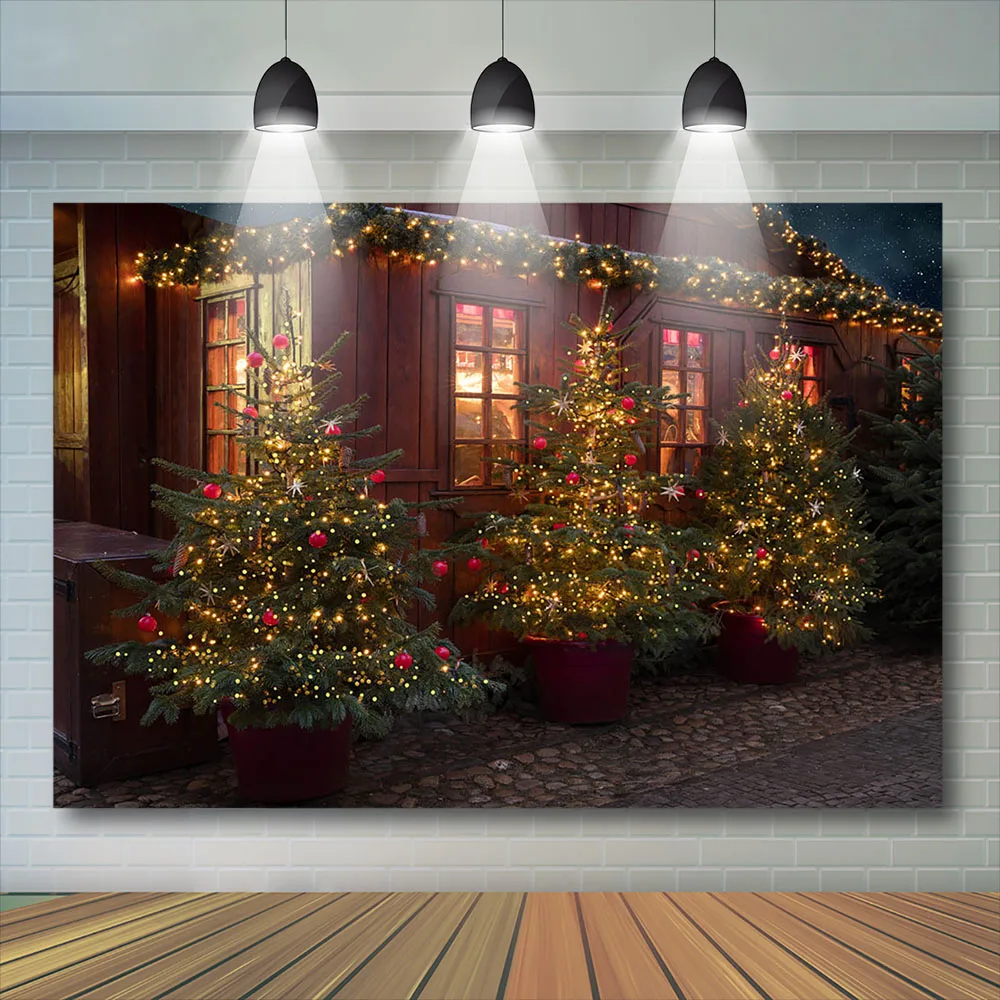 Рождественский фон для фотосъемки с изображением деревянного дома детский праздничный венок деревья Декор Фон для детской фотостудии