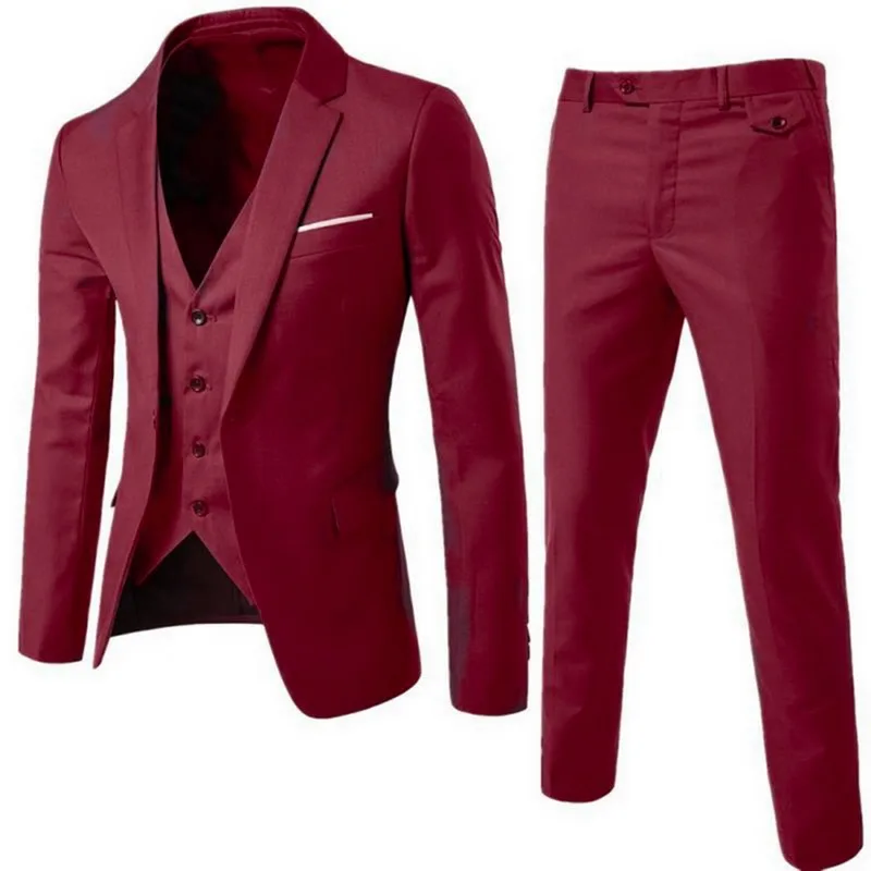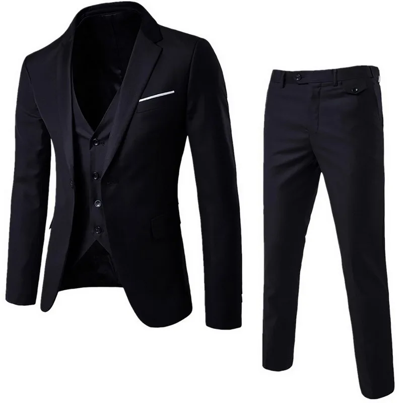 Деловой костюм из 3 предметов однотонная Цвет Модные мужские тонкие удобные офисные комплекты S-3XL мужской пиджак + штаны + жилет, мужской костюм на свадьбу