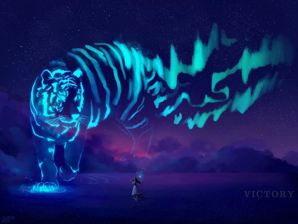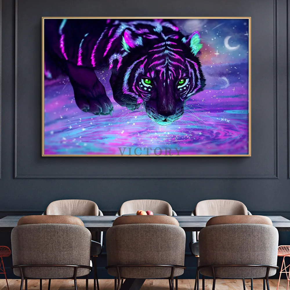 Современная флуоресцентная картина тигра в скандинавском стиле, нас...