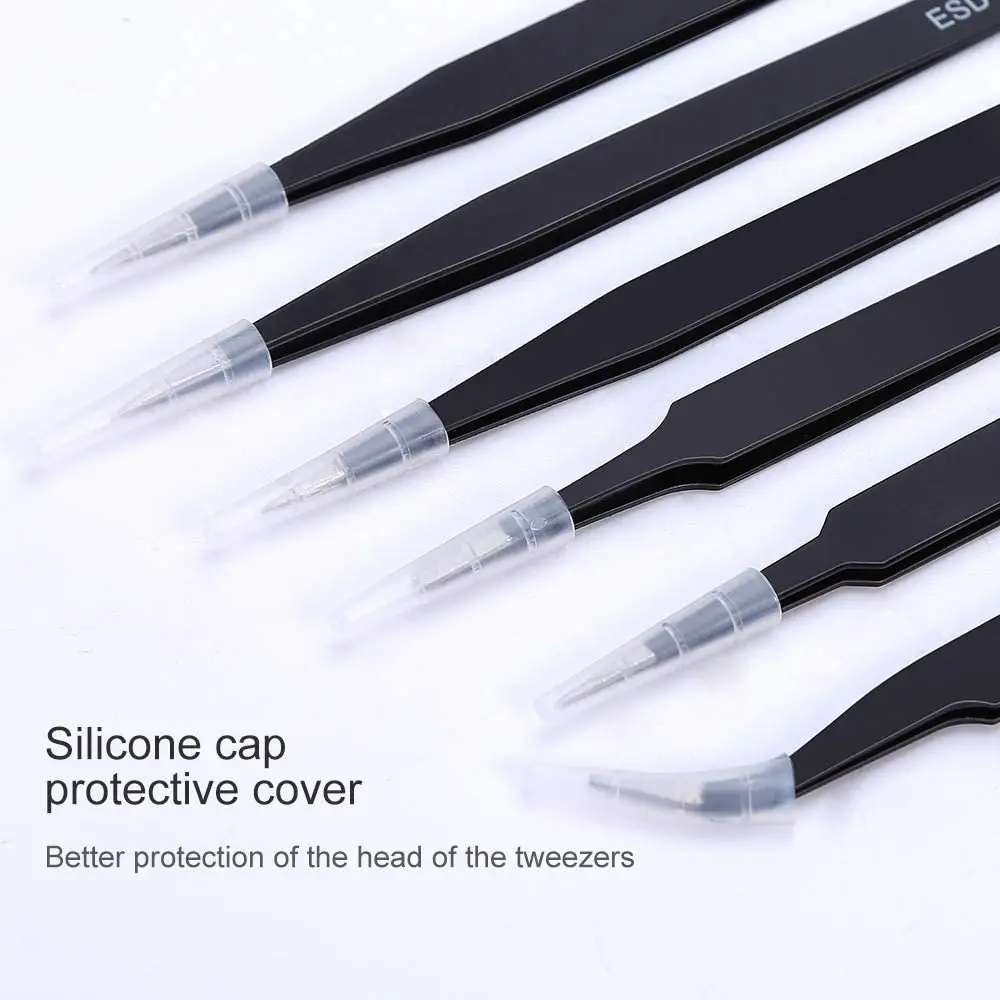 Набор высокоточных пинцетов из 6 предметов, усовершенствованные антистатические изогнутые пинцеты из нержавеющей стали для электроники, лабораторных работ, ювелирных изделий