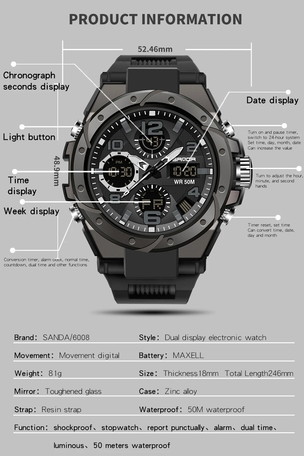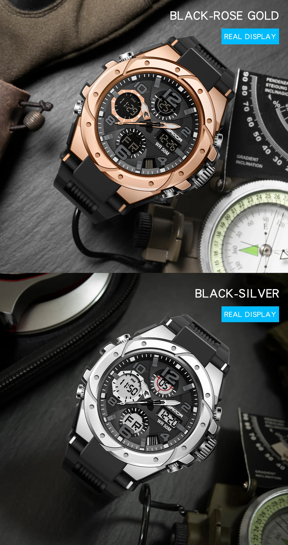 SANDA спортивные часы мужские 2021 брендовые военные водонепроницаемые противоударные часы двойной дисплей Авто Дата мужские цифровые наручные часы Reloj