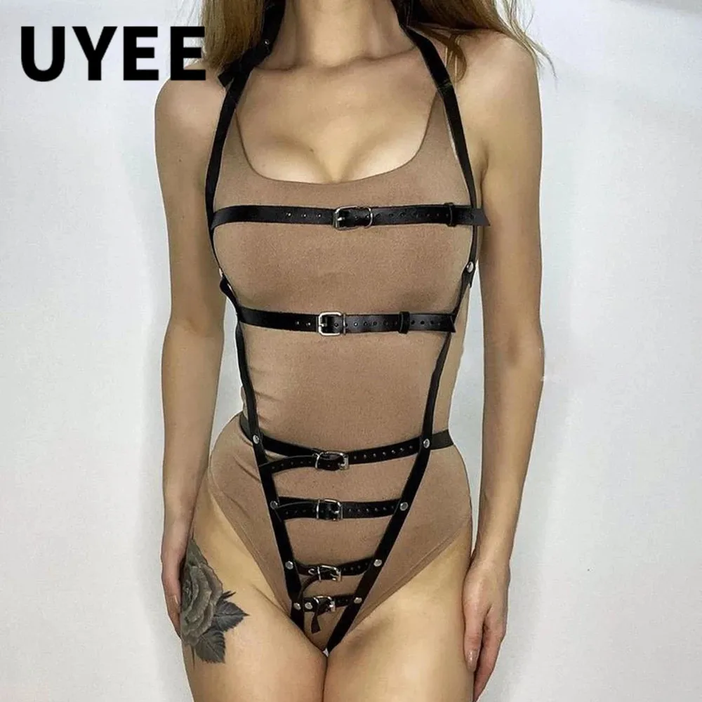 Портупея UYEE Женская на все тело нижнее белье для бондажа, готический пикантный ремень на грудь из искусственной кожи, топ с подвязками, экзотический ремень для ночного клуба