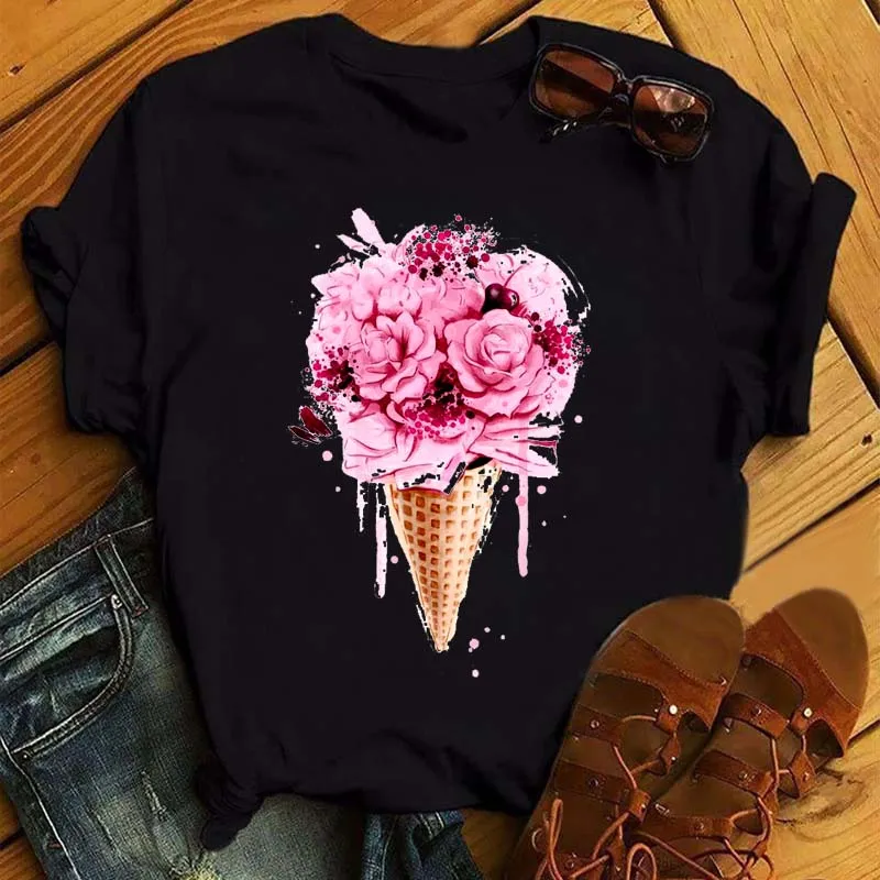 Футболка женская Harajuku, летняя футболка с диким цветочным принто...