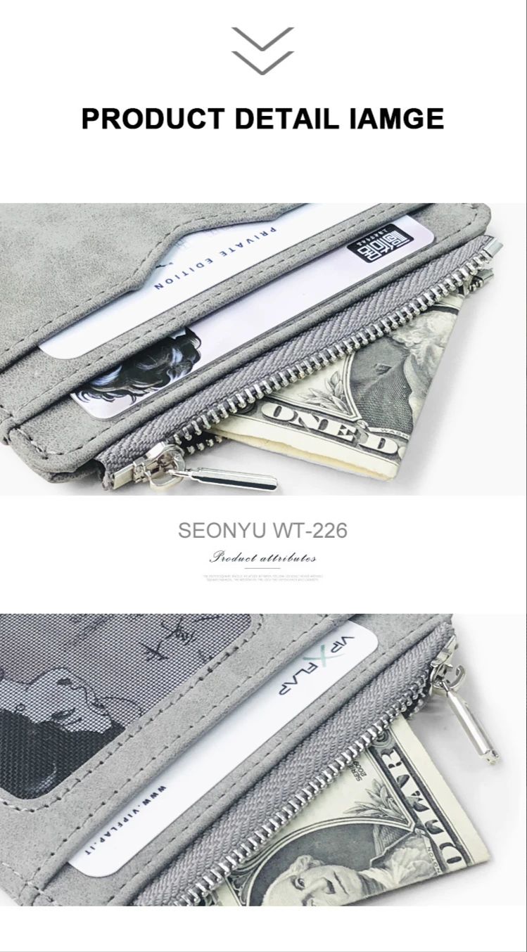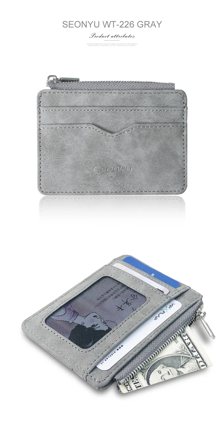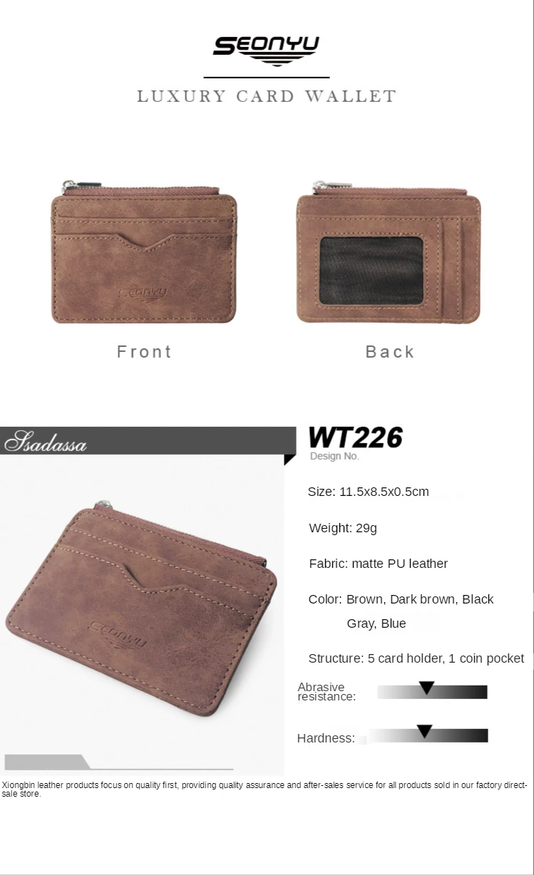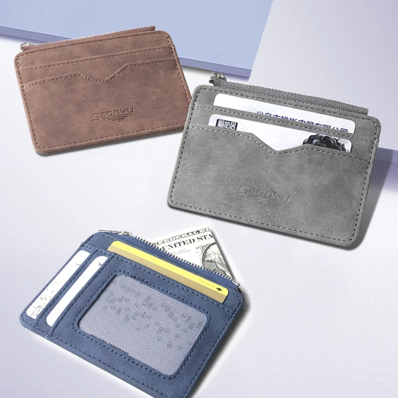 Мужской кошелек на молнии, короткий кошелек из матовой кожи, отделение для монет и нескольких карт, визитница, 2021