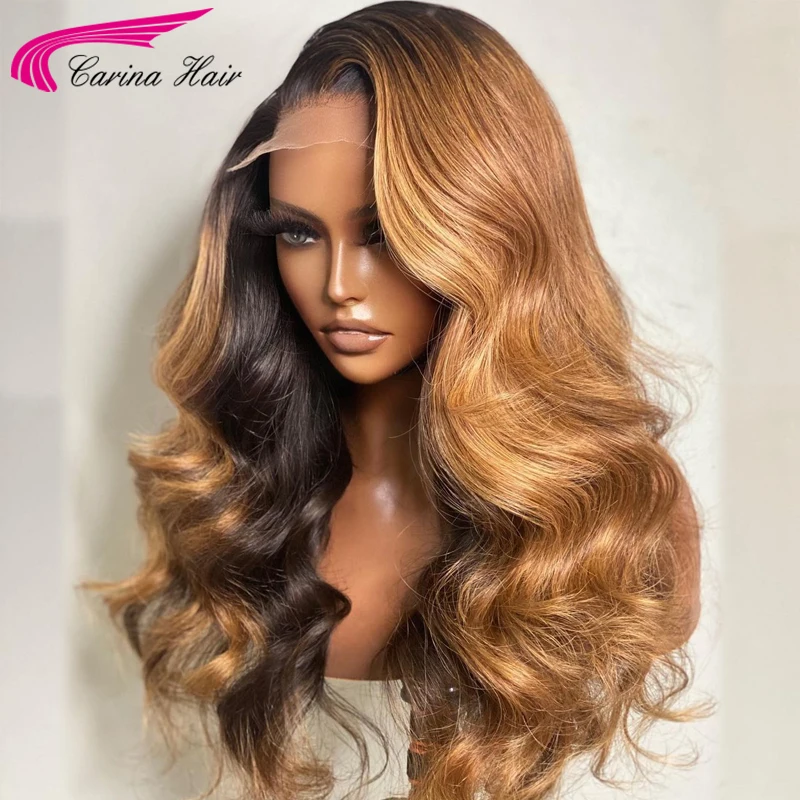Парики Омбре Имбирные волнистые 13x 4, парики на сетке спереди 180%...