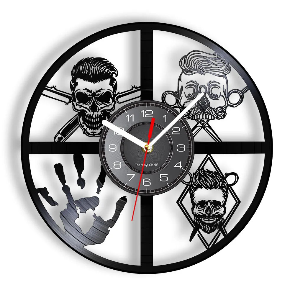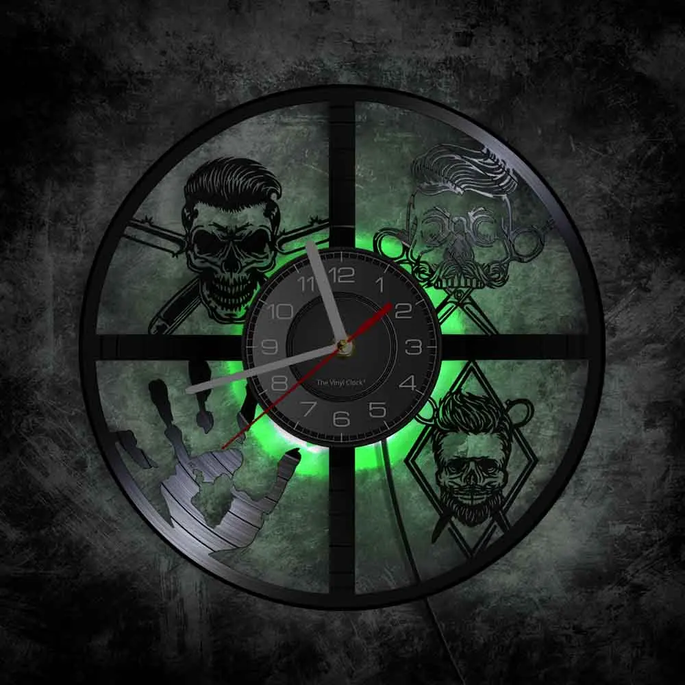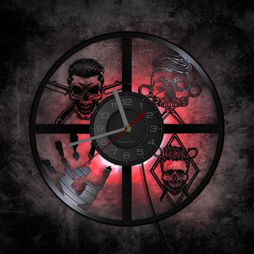 Панк парикмахера настенные часы парикмахерские инструменты для бритья Винтаж дизайн рук скелета, значок часы парикмахерской 7-Цвета светильник