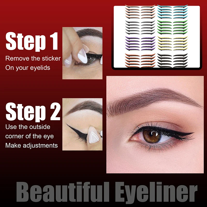 Как использовать:1. Вы тщательно снимите наклейку2. Отрегулируйте его с помощью внешнего угла вашего глаза3. Наклейте его на свое веко, и вы хорошо идете!Если вы хотите, добавьте подкладку для чернил во внутренний угол, чтобы завершить стиль.Наклейки для подводки век поставляются в тоннах различных дизайнов и стилей для всех типов форм и этносов глаз.