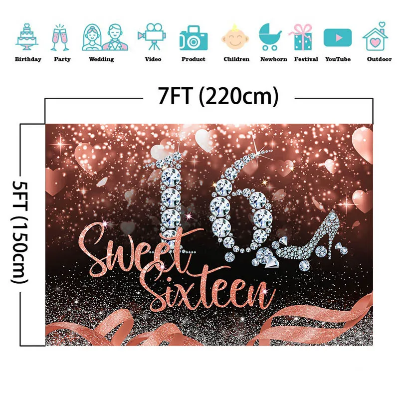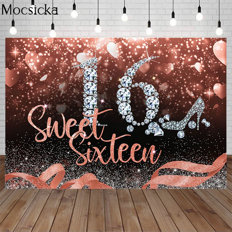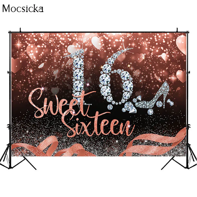Mocsicka милые 16 тематические фоны для девочек на день рождения шестнадцать блестящих алмазных лент декоративный фон для вечерние баннер для фотостудии