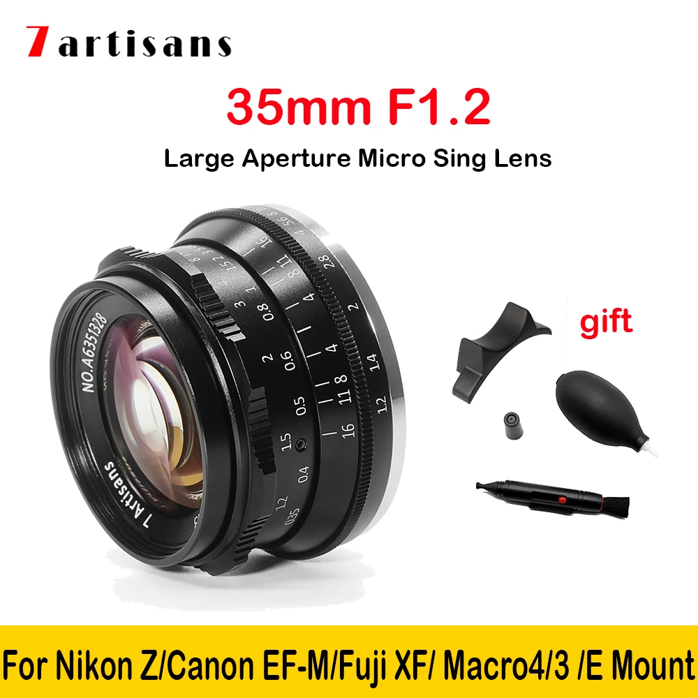 Объектив 7artisans 35 мм F1.2 Prime, ручная камера APS-C, беззеркальный, с фиксированным фокусом, для Sony ENikon ZFuji XFE Moutмакро 43