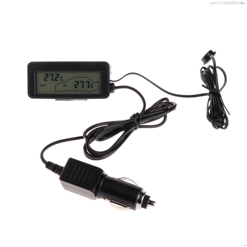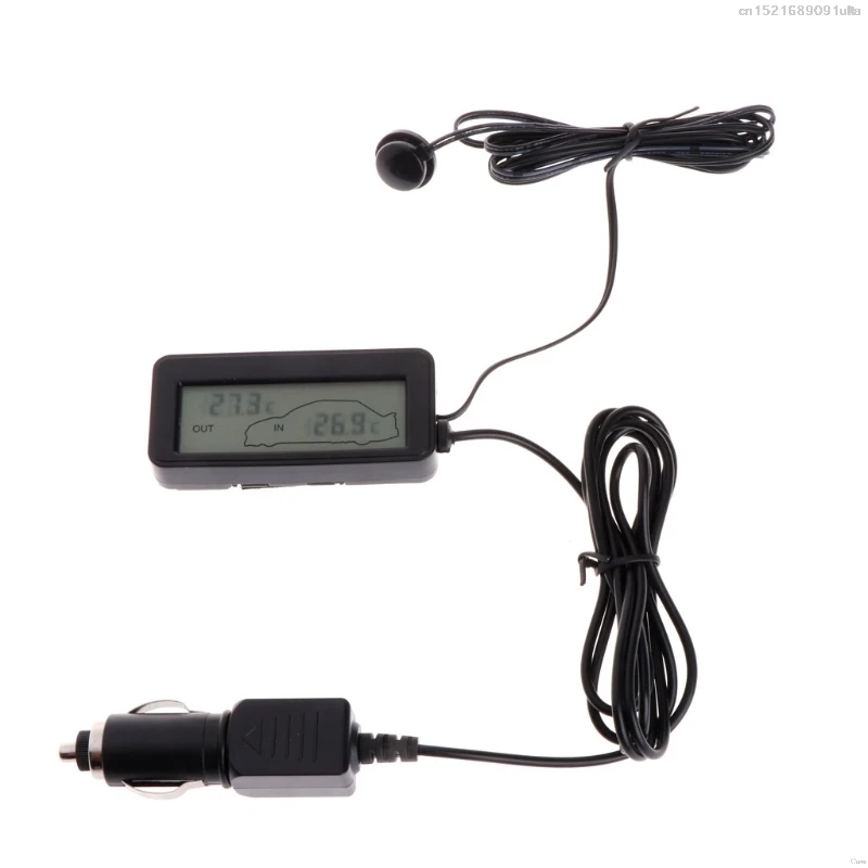 Особенности:Автомобильный цифровой термометр внутри и снаружи100% Новый брендИзмеряет и отображает температуру (Цельсия) в вашем автомобиле, а также температуру снаружиРаботает с транспортными средствами 12 ВПодключается к зарядному устройству прикуривателя вашего автомобиляУмный черный корпус улучшает интерьер Вашего автомобиляЦифровой ЖК-дисплей, легко читается