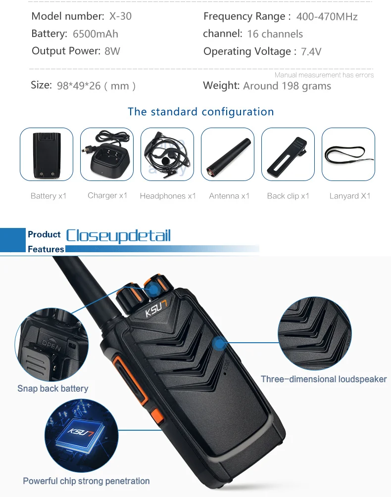 Переносная рация KSUN X30QH 8 Вт, дальнего радиуса действия Cb, Мобильная двухсторонняя радиостанция, сканер icon star icon star icon star icon star icon star