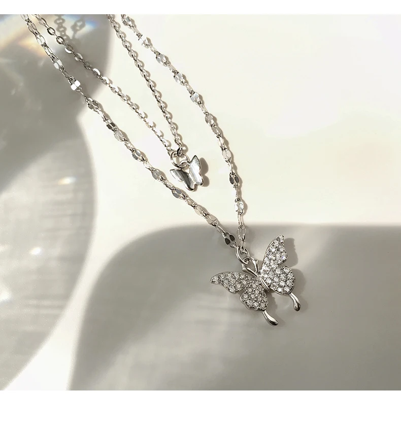QMCOCO серебряный цвет милый романтический циркон ожерелья с двумя бабочками для женщин элегантные свадебные украшения для шеи летние модные аксессуары