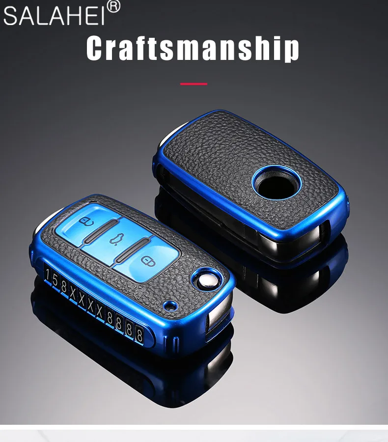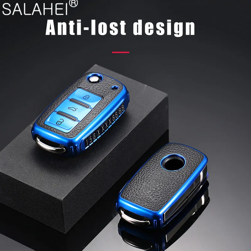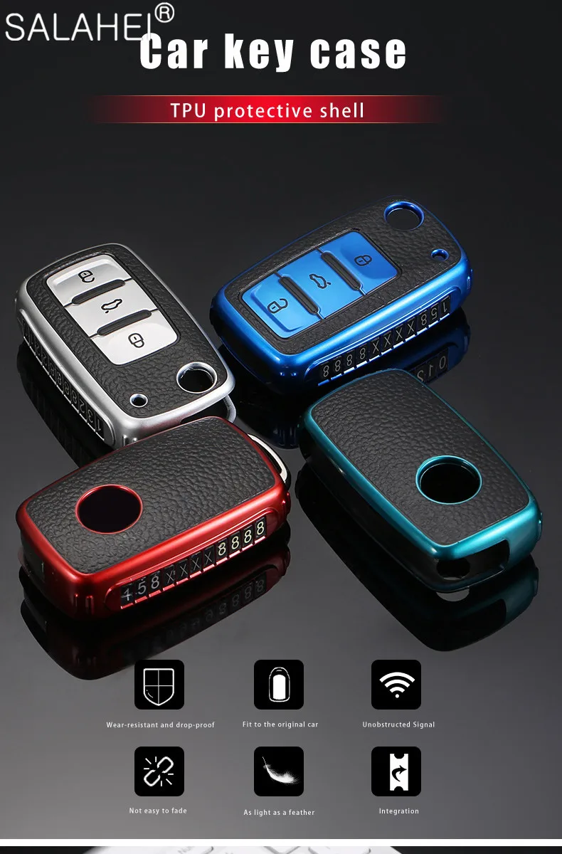 Новинка ТПУ + кожаный чехол для автомобильного ключа чехол для Volk...