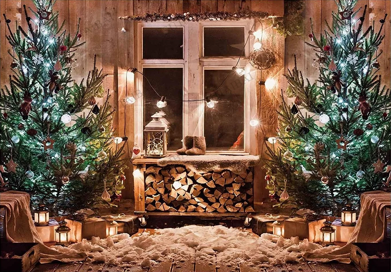 Рождественские камины украшение интерьер винтажные деревянные окна огни Рождественская елка зимняя фотография ребенок фотостудия фон