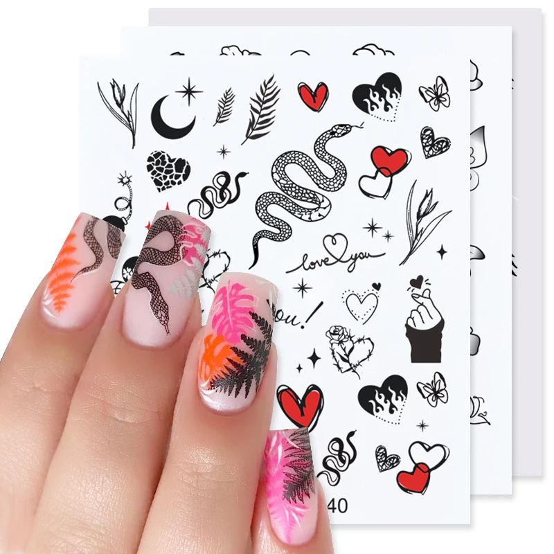 3d-наклейки в виде змеи для дизайна ногтей, цветные драконы, слайдеры, наклейки в виде черной змеи для маникюр гвоздь, художественные декоративные наклейки