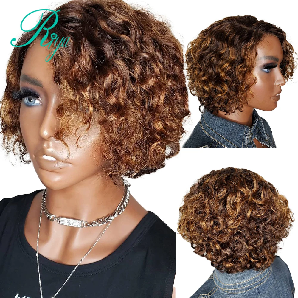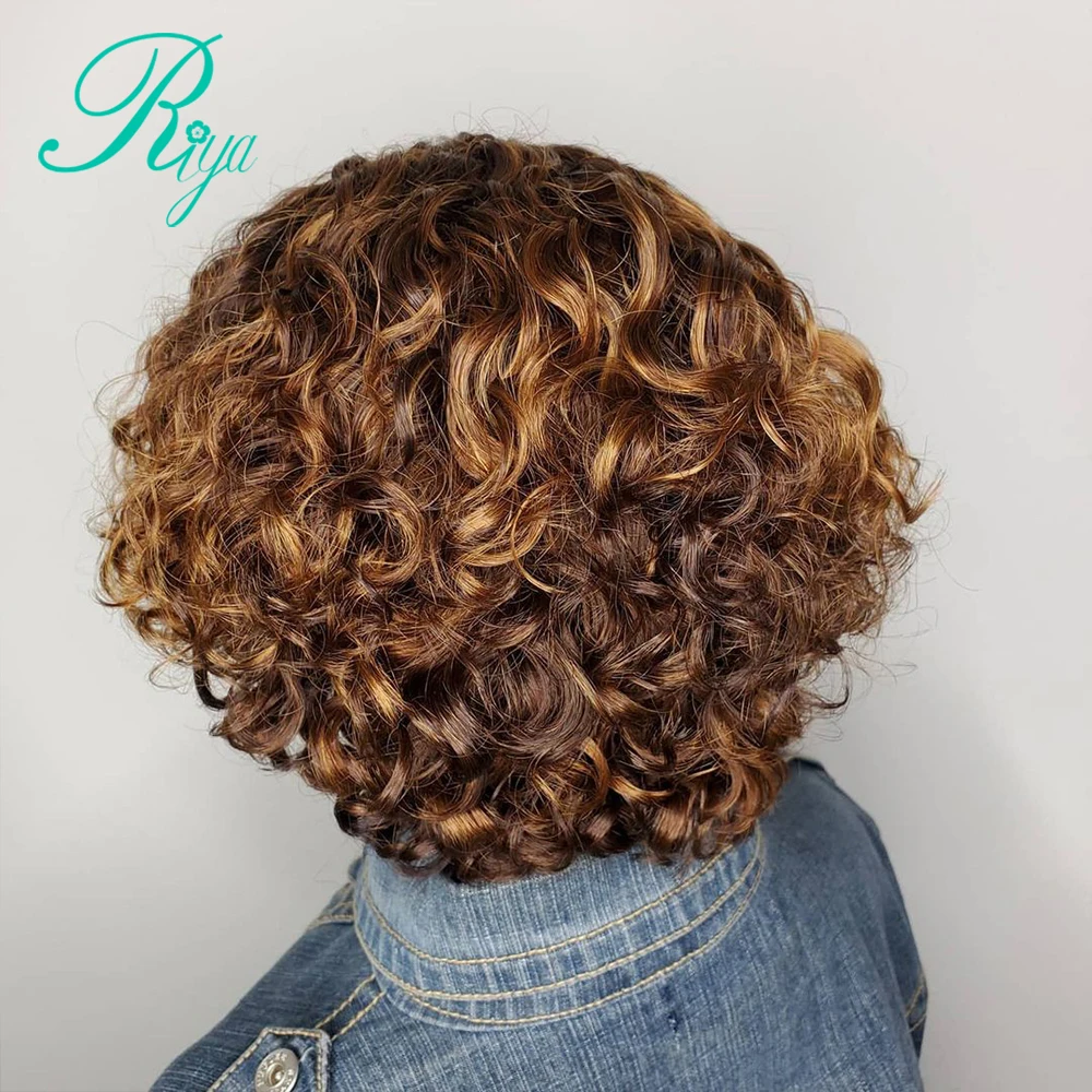 Медовая Блондинка Омбре 30 цветов фальшивые короткие вьющиеся волосы боб срез 4X4 парик с застежкой на сетке предварительно выщипанные кружевные передние человеческие волосы парики для женщин Реми