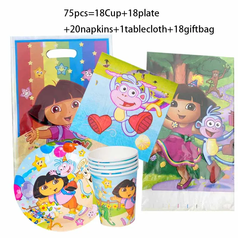 75 шт. принадлежности для дня рождения ДОРА the Explorer украшения для вечеринки одноразовая посуда Салфетка скатерть