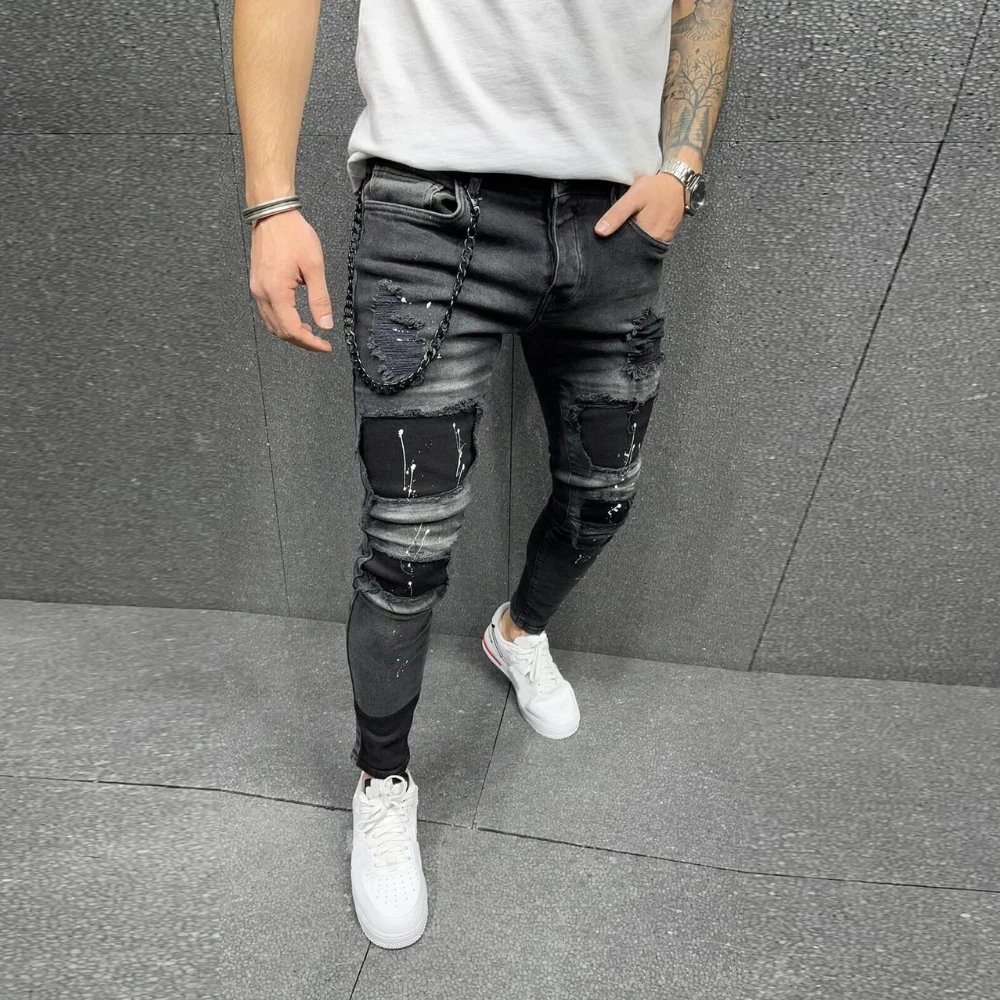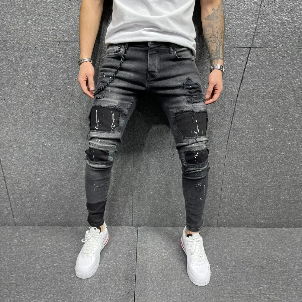 Мужские Узкие рваные джинсы 2021 Лидер продаж уличная одежда в стиле хип-хоп с принтом тянущиеся мужские повседневные джинсовые штаны черные мужские костюмы Жан S-3XL