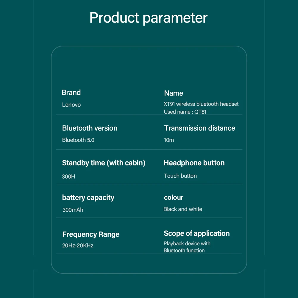 Беспроводные Bluetooth наушники Lenovo XT91, TWS наушники-вкладыши,...