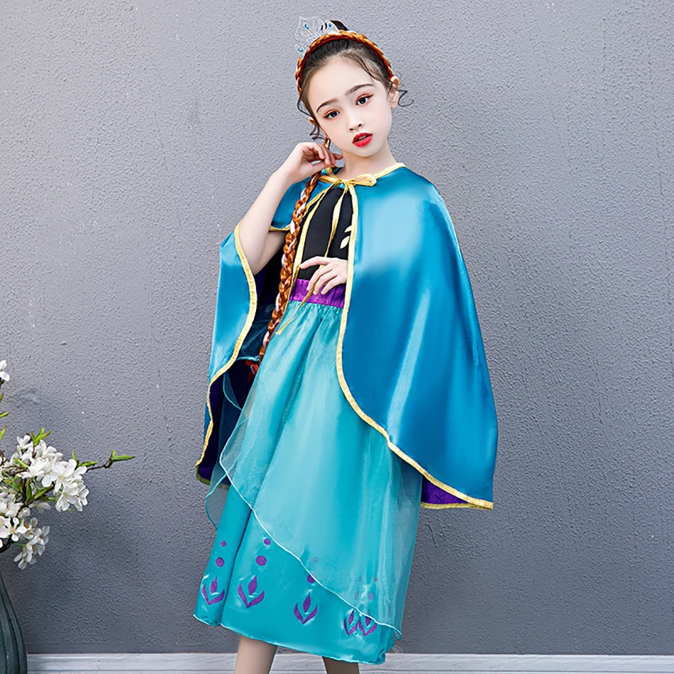 Для детей от 3 до 10 лет для девочек в стиле Анны платье принцессы для костюмированной вечеринки платье Анна и Эльза 2 одежда накидка с героями мультфильма Снежная королева вечерние нарядное платье для девочек