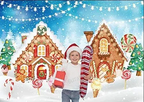 Рождественская елка, рисунок Имбирный пряник фон с домами печенье баннер Candyland зимние Снежинка детский фон для фотосъемки на день рождения вечерние