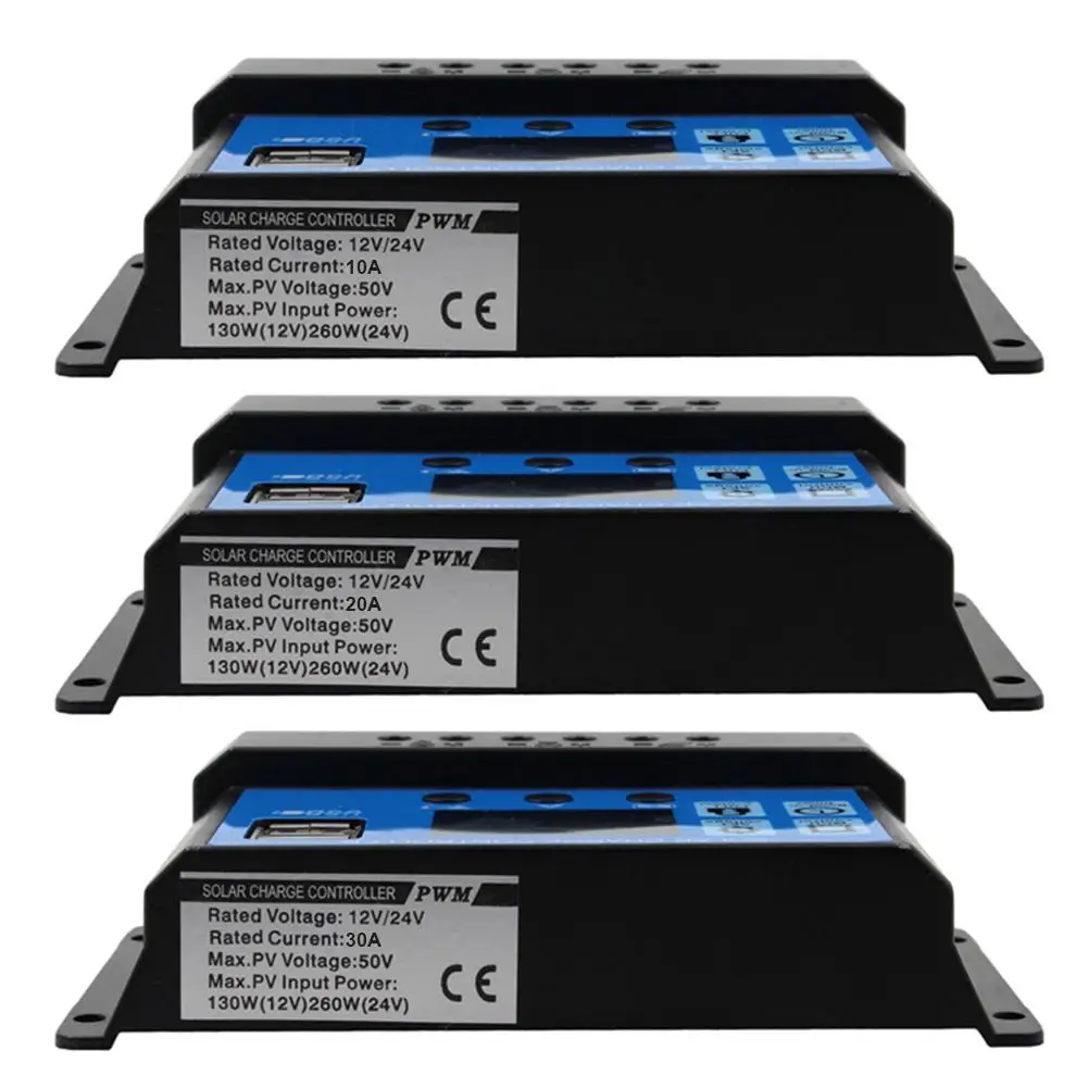 ШИМ двойной USB выход Солнечный автоматический контроллер заряда солнечной панели зарядное устройство регулятор 12V24V Мощность HD ЖК-дисплей 10A20A30A