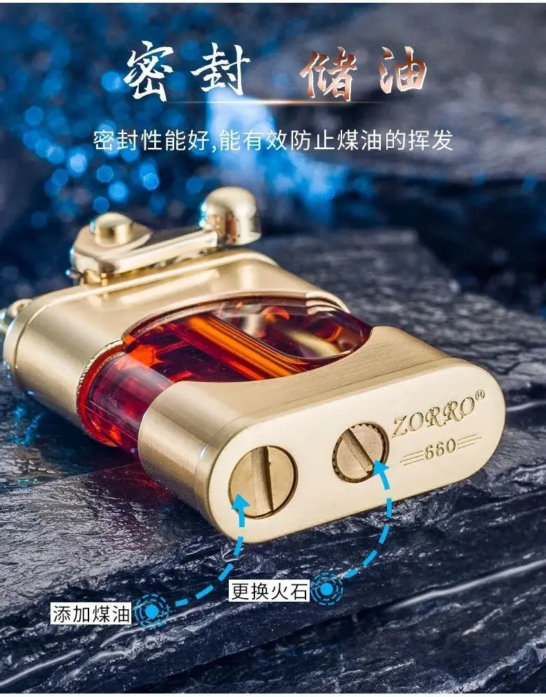 Новинка, керосиновая Зажигалка Zorro, кремневая зажигалка, зернистость, прозрачный масляный бак, креативный старомодный бензиновый дым