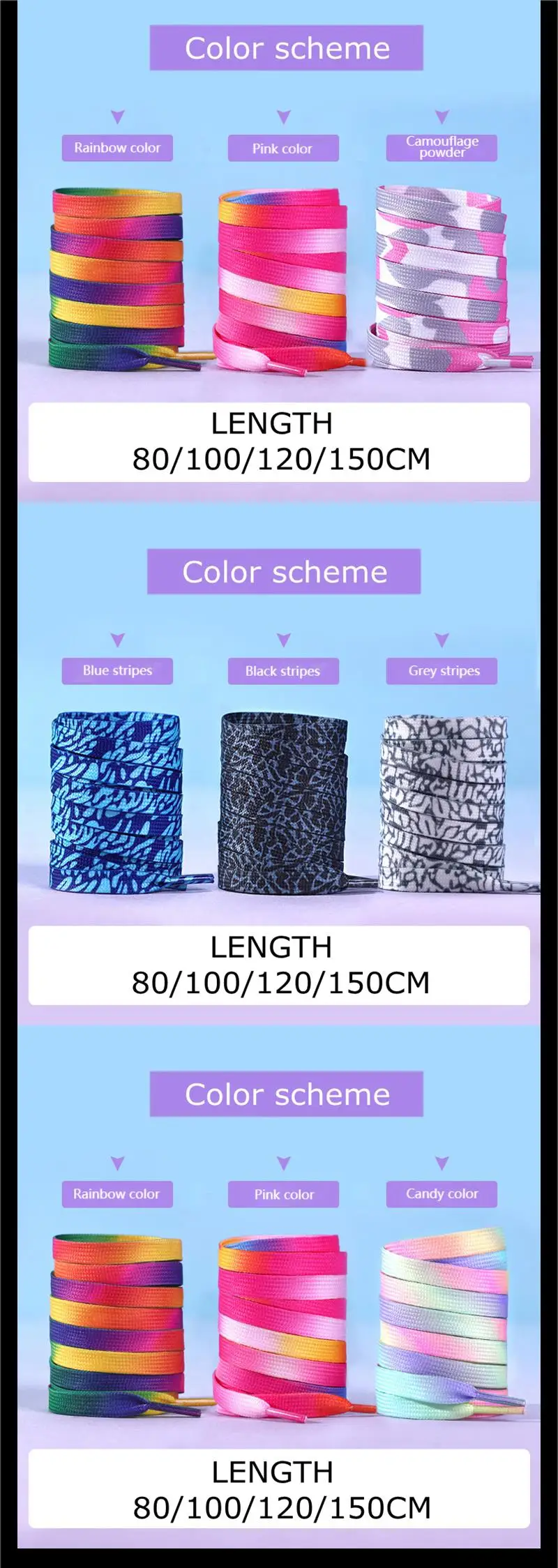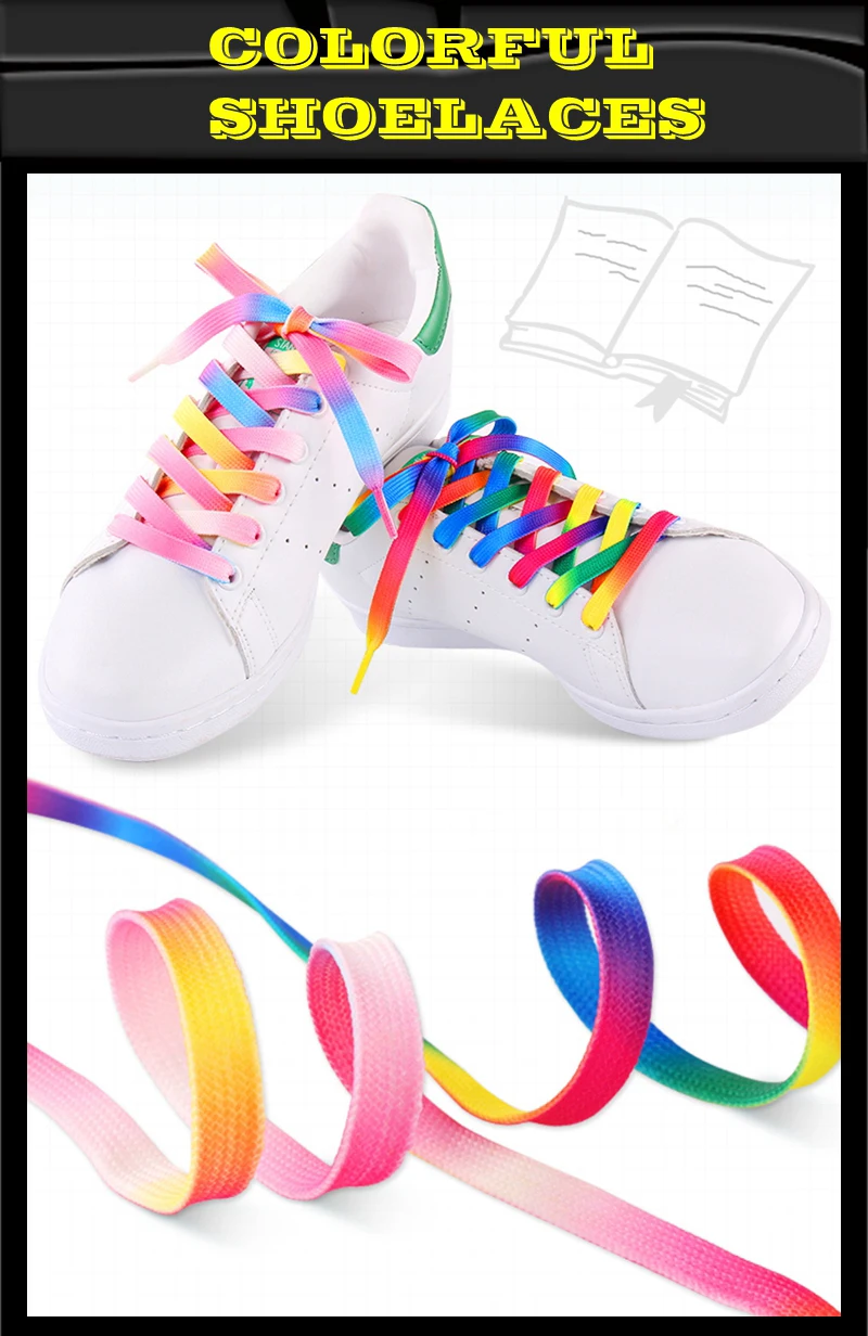 Плоские шнурки для обуви, повседневные яркие, с градиентом, для мужчин и женщин