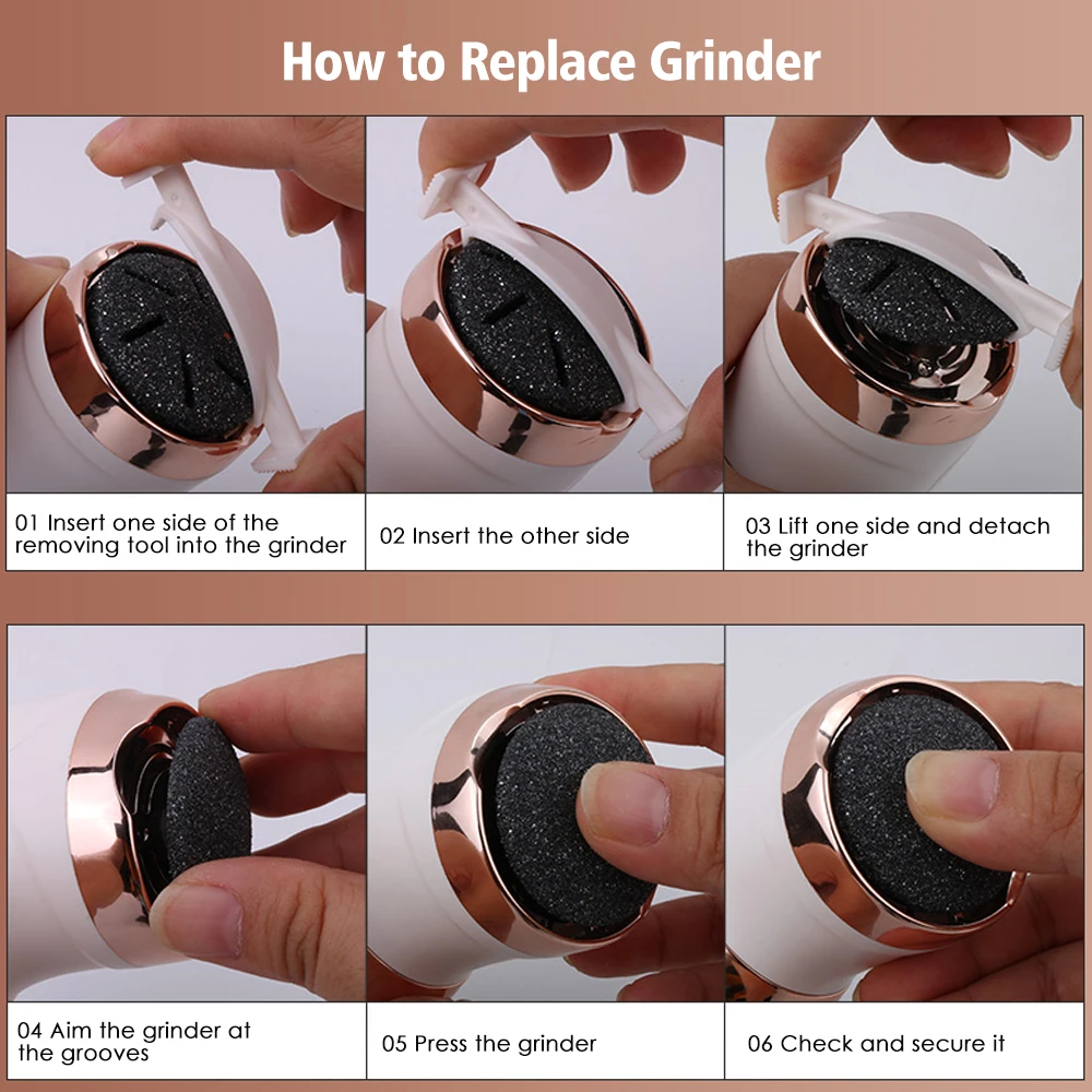 Особенности:1. Этот продукт оснащен контейнером для пыли, предназначенным для сухой и грубой руки, кожи ног или пятки и не должен использоваться в других частях тела.2. Есть 2 режима скорости и 3 головки ролика:Мелкая роликовая головка-подходит для мозолей рук, свернутой омертвевшей кожи и более деликатного ухода за кожей;Обычная роликовая головка-подходит для новообразованных мозолей и нормального ухода за кожей;Грубая роликовая головка-подходит для упрямых толстых мозолей и омертвевшей кожи.
