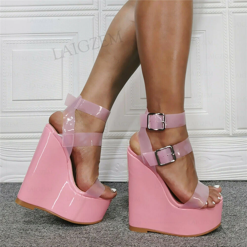 SEIIHEM/женские босоножки Туфли-лодочки с открытым носком на танкетке и ремешке с пряжкой вечерние туфли для весны и лета размера плюс, 39, 42, 50, 52