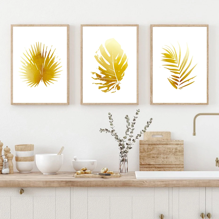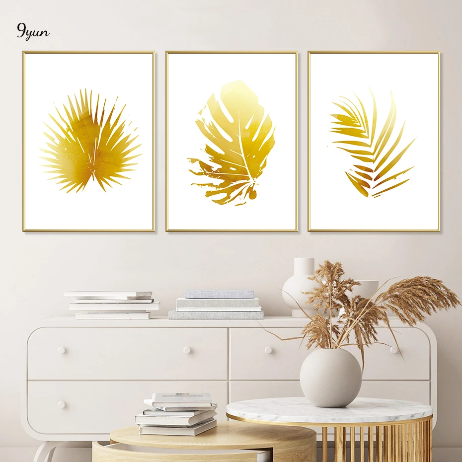 Роскошный постер с изображением золотых растений и листьев, тропическая настенная Картина на холсте, фотообои, интерьер комнаты, Декор без рамки